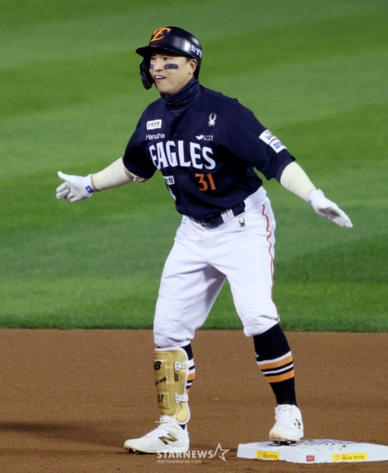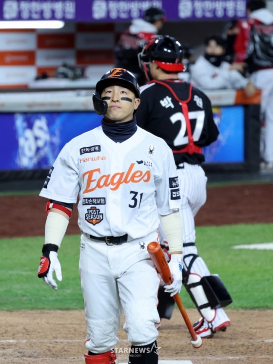 손아섭은 지난해 7월 트레이드를 통해 NC 다이노스를 떠나 한화로 향했다. 한화는 NC에 2026 KBO 신인드래프트 3라운드 지명권 1장 및 현금 3억원을 지불했다. 한화가 손아섭을 원한 이유는 명확했다. 가을야구에서 승부를 걸어보기 위함이었다. 당시 한화는 "KBO 리그 통산 최다안타 기록 보유 선수이자, 최근 10년 내 포스트시즌 통산 OPS(출루율+장타율)가 1.008에 달하는 손아섭이 가을야구 진출 시 도움이 될 것으로 판단해 이번 트레이드를 단행했다"고 설명했다.