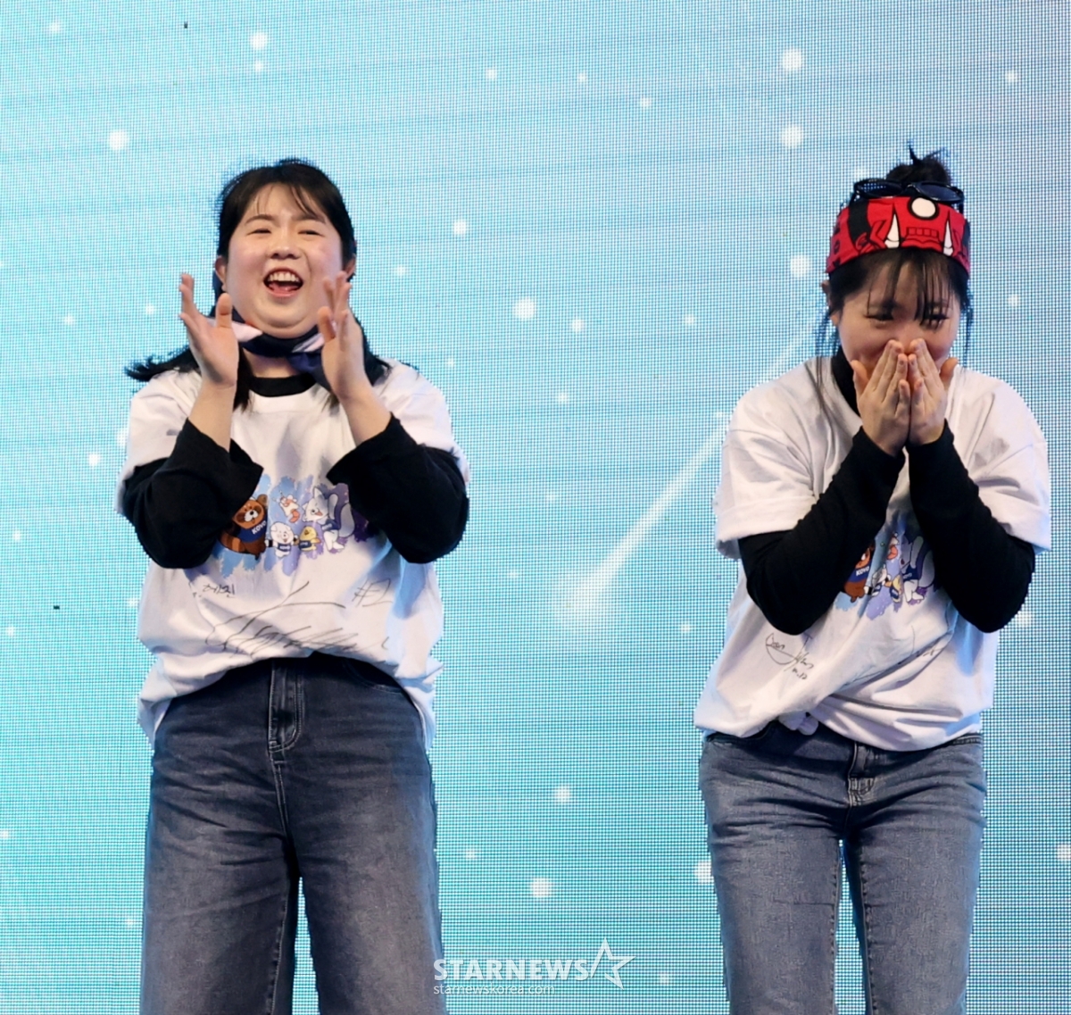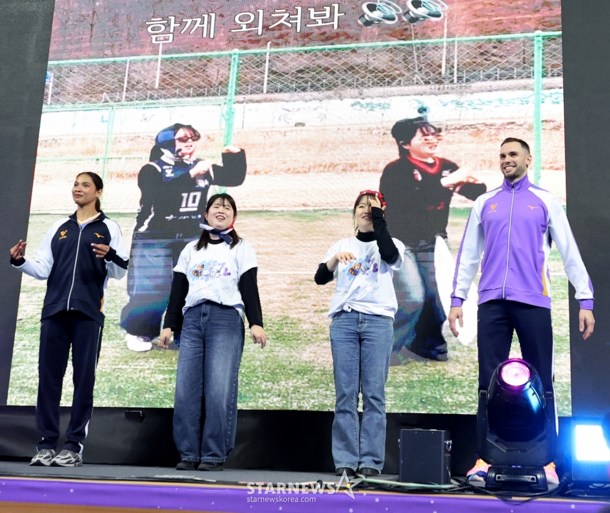 타나차와 비에나 춘천 호반체육관에서 열린 2025-2026 진에어 V리그 올스타전에 앞서 진행된 팬과함께 댄스콘테스트에서 우승한 후 기념촬영을 하고 있다. K스타와 V스타의 맞대결로 전행된 올스타전은 스파이크서브, 리베로 콘테스트 등 다양한 이번트가 열려 팬들에 즐거움을 선사했다. 2026. 01.25.
