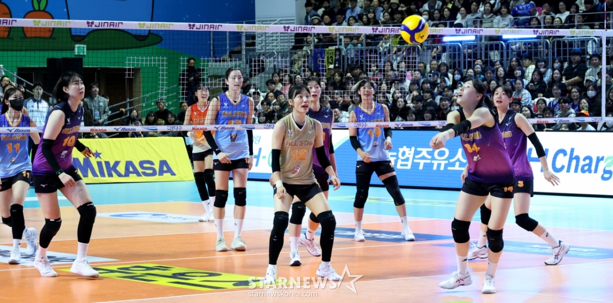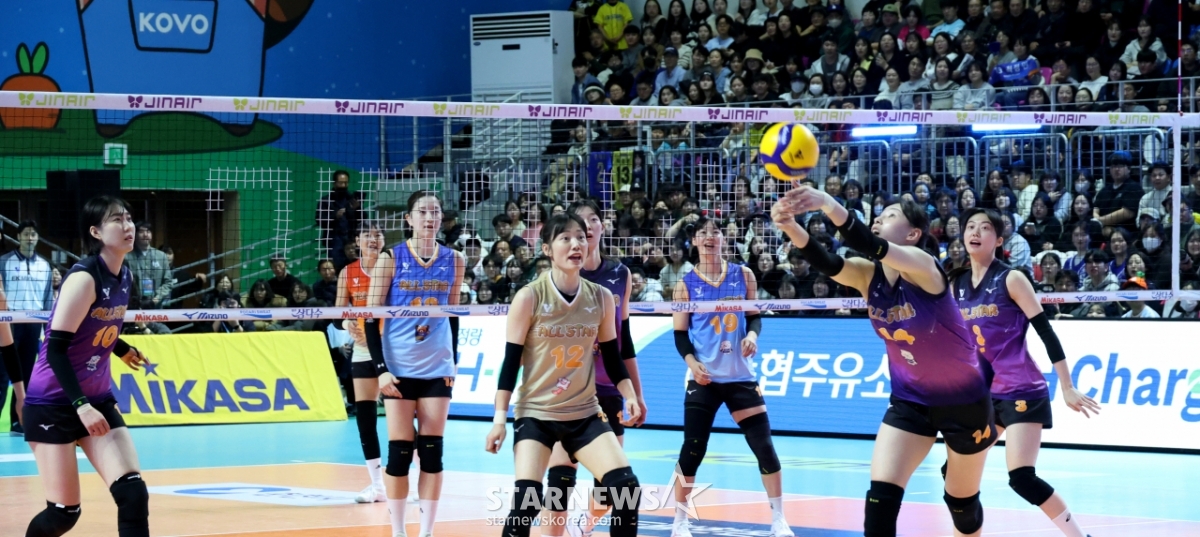 25일 춘천 호반체육관에서 열린 2025-2026 진에어 V리그 올스타전 2세트 여자부 경기가 진행되고 있다. K스타와 V스타의 맞대결로 전행된 올스타전은 스파이크서브, 리베로 콘테스트 등 다양한 이번트가 열려 팬들에 즐거움을 선사했다. 2026. 01.25.