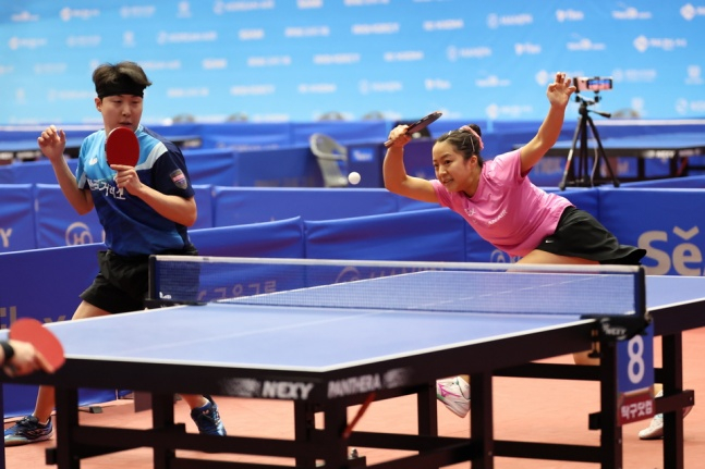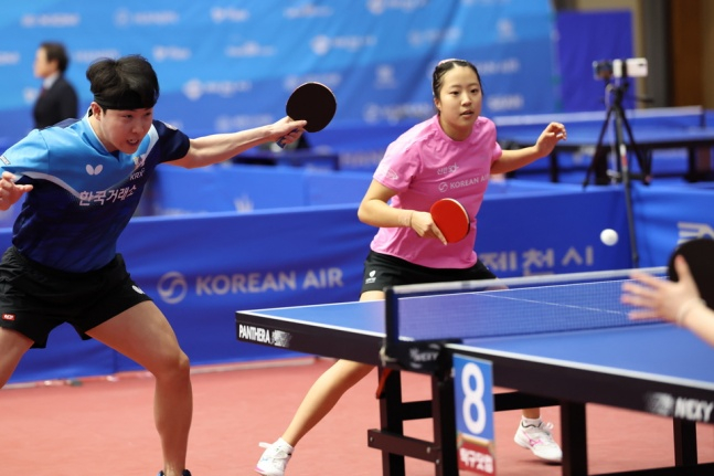 임종훈-신유빈 조는 25일 오후 경기로 치러진 박강현-이다은 조(미래에셋증권)와 4강전에서도 힘든 경기를 펼쳤다. 왼손 박강현의 파워와 이다은의 날카로운 속공이 내내 임종훈-신유빈 조를 괴롭혔다. 첫 게임을 먼저 내준 뒤 2, 3게임에서 연속으로 듀스 접전을 펼쳤다. 4, 5게임에서 특유의 호흡이 되살아나며 3-2(9-11, 13-11, 10-12, 11-5, 11-5) 신승을 거뒀다.