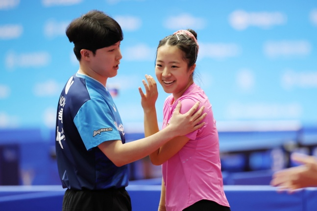 지난해 월드테이블테니스(WTT) 파이널스를 제패한 뒤 첫 국내 무대다. 결승까지는 쉽지 않았다. 16강전 첫 경기부터 김우진-최해은 조(화성도시공사)의 거센 기세에 벼랑까지 몰리다 기사회생했다. 먼저 두 게임을 내준 뒤 세 게임을 내리 따내는 역전승을 거두고 가슴을 쓸어내렸다. 이어진 8강전에서는 한국마사회의 박찬혁-이다은 조에게 3-1(11-7, 11-9, 11-13, 11-5) 승리로 이번에도 셧아웃은 없었다.