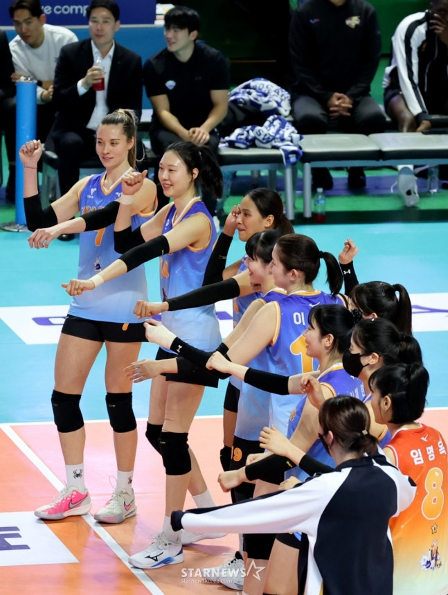 올스타전만 뛰면 되지 않느냐는 농담에는 "제가 그 정도는 아니지 않나. 올스타전을 그 정도로 캐리한 선수는 아니다"라며 "아까 (김)연경 언니보고 세리머니 킹왕짱 아니냐고 했다. 연경 언니가 정말 올스타전의 스타다. 시즌이 끝나가니까 마음의 결정을 해서 할 것 같다"고 전했다.