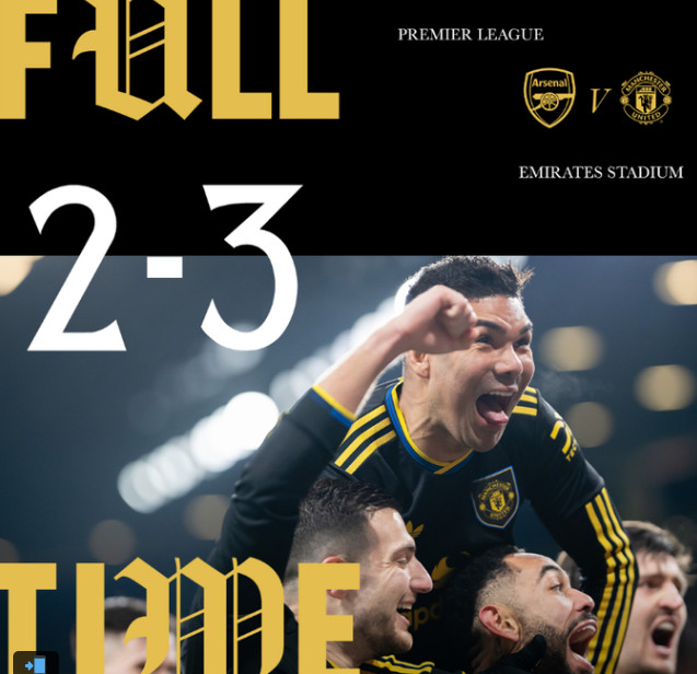 맨유는 26일(한국시간) 영국 런던의 에미레이트 스타디움에서 열린 '2025~2026시즌 잉글리시 프리미어리그(EPL)' 23라운드 원정에서 아스널에 3-2 역전승했다.