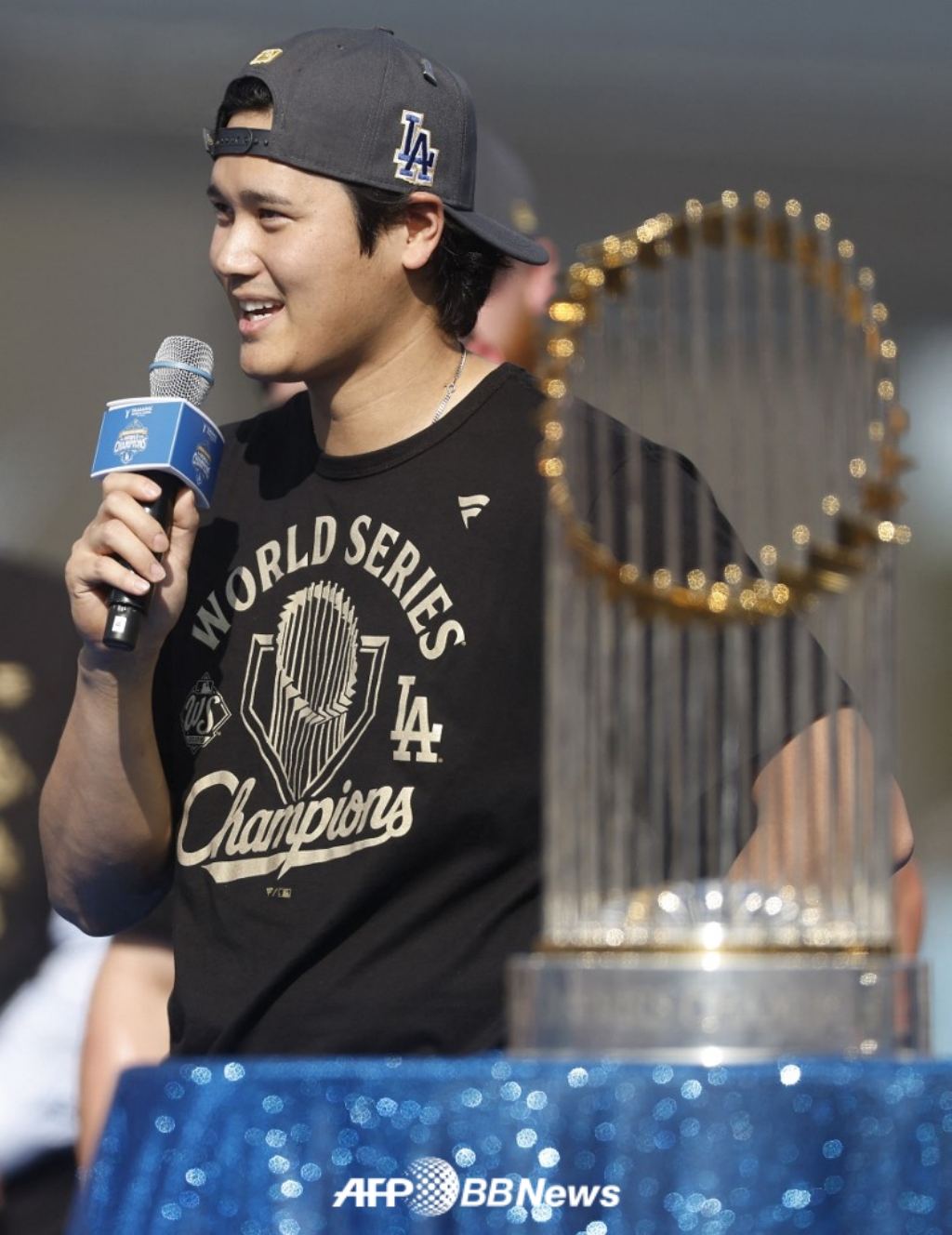 검은색 정장 차림으로 한껏 멋을 낸 오타니는 "멋진 행사를 개최해주셔서 감사하다. 항상 우리는 환영받고 있다는 느낌을 받는다"면서 "MVP는 제게 큰 의미가 있는 상이다. 또 이 상을 받을 수 있어서 매우 영광이었다"고 유창한 영어로 말했다. 이어 오타니는 다저스의 고위층과 프런트, 코치, 그리고 동료들을 언급하며 감사의 뜻을 표했다.