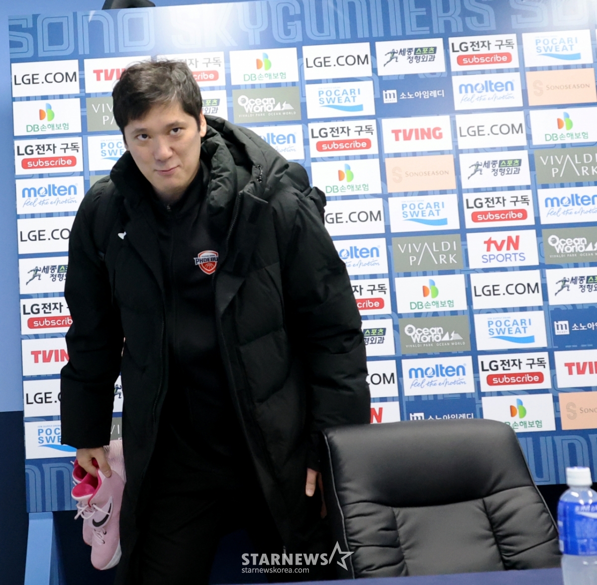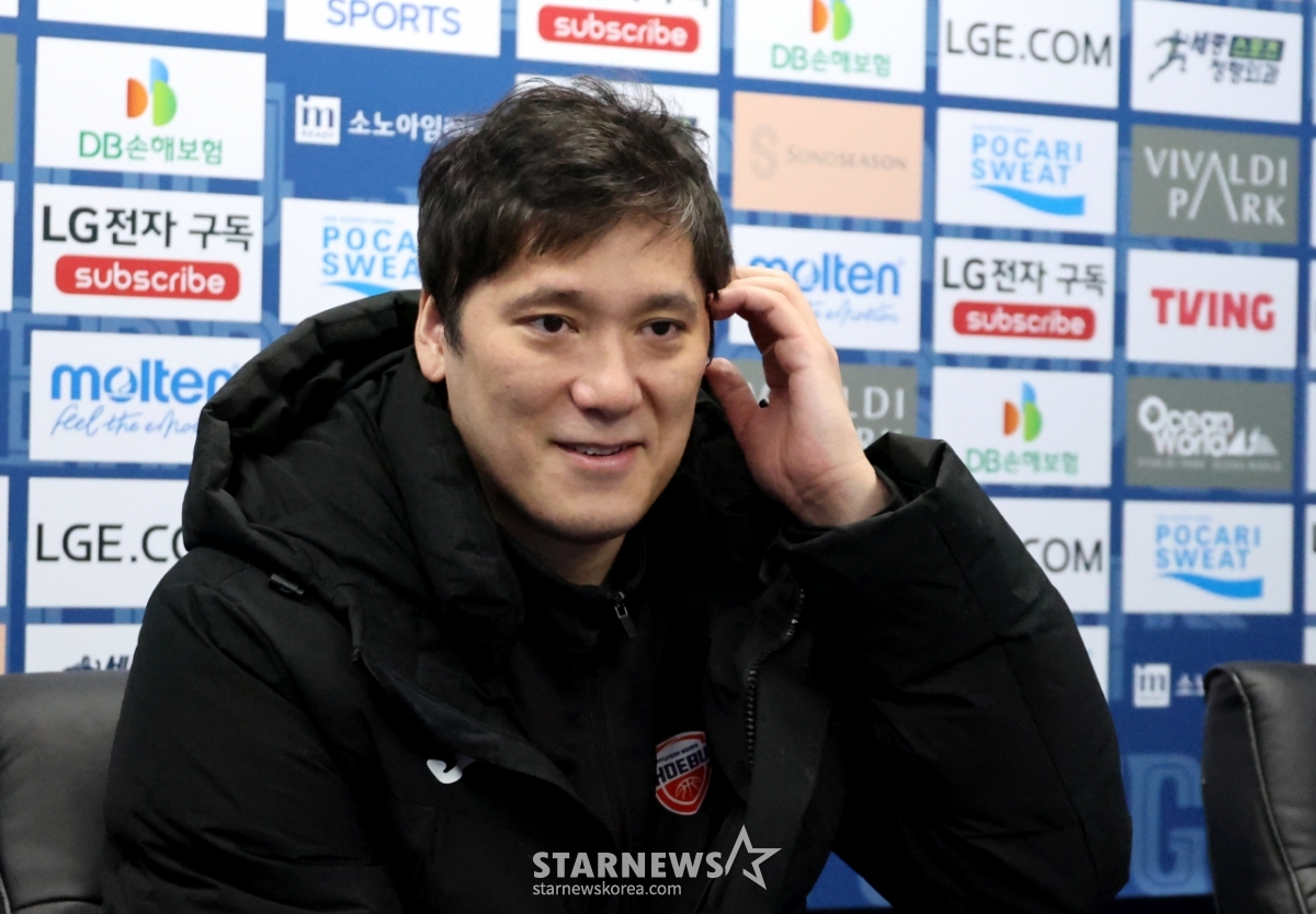 경기전 은퇴소식을 전한 모비스 레전드 함지훈이 27일 고양소노아레나에서 열린 2025-2026 LG전자 프로농구 고양소노와 울산모비스 경기를 마친 후 공식기자회견을 갖고 소감을 전하고 있다. 2026.01.27.