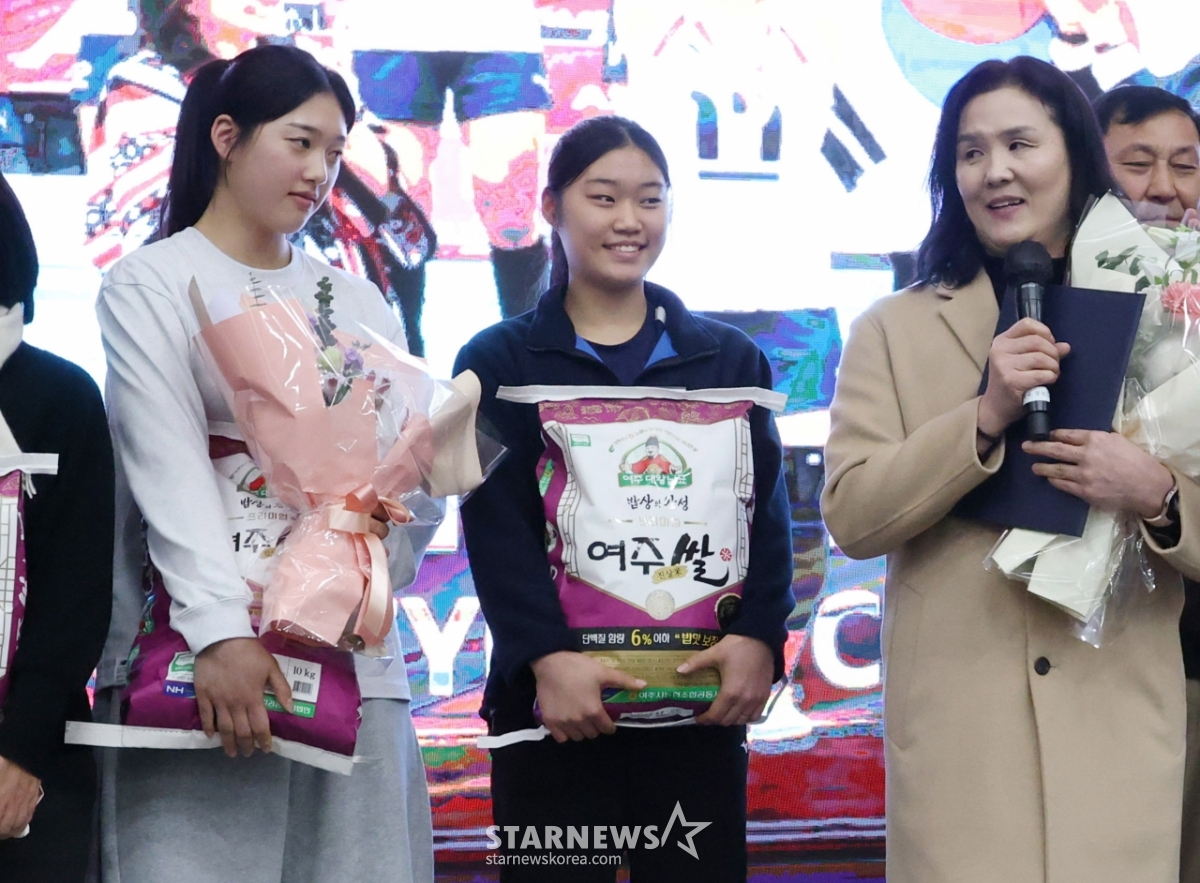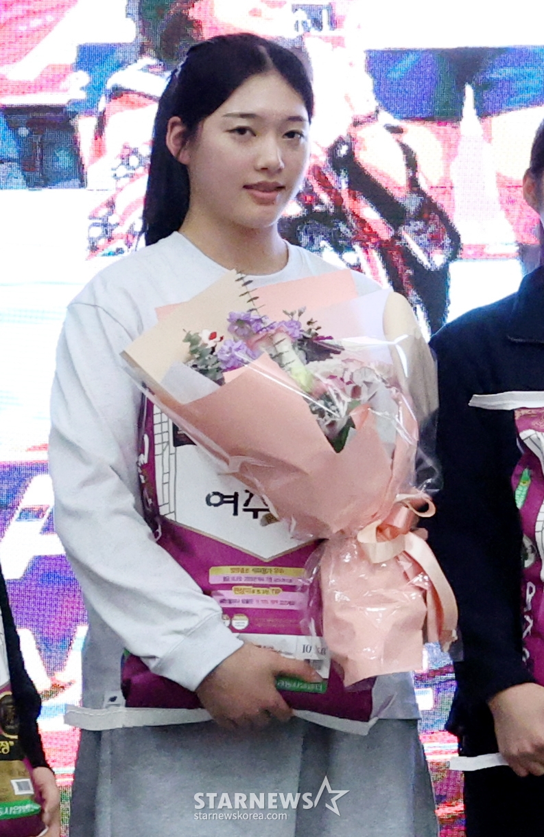 '제2의 김연경' 손서연이 '배구인의 밤'에서 MVP 트로피와 쌀가마니를 들아올렸다.