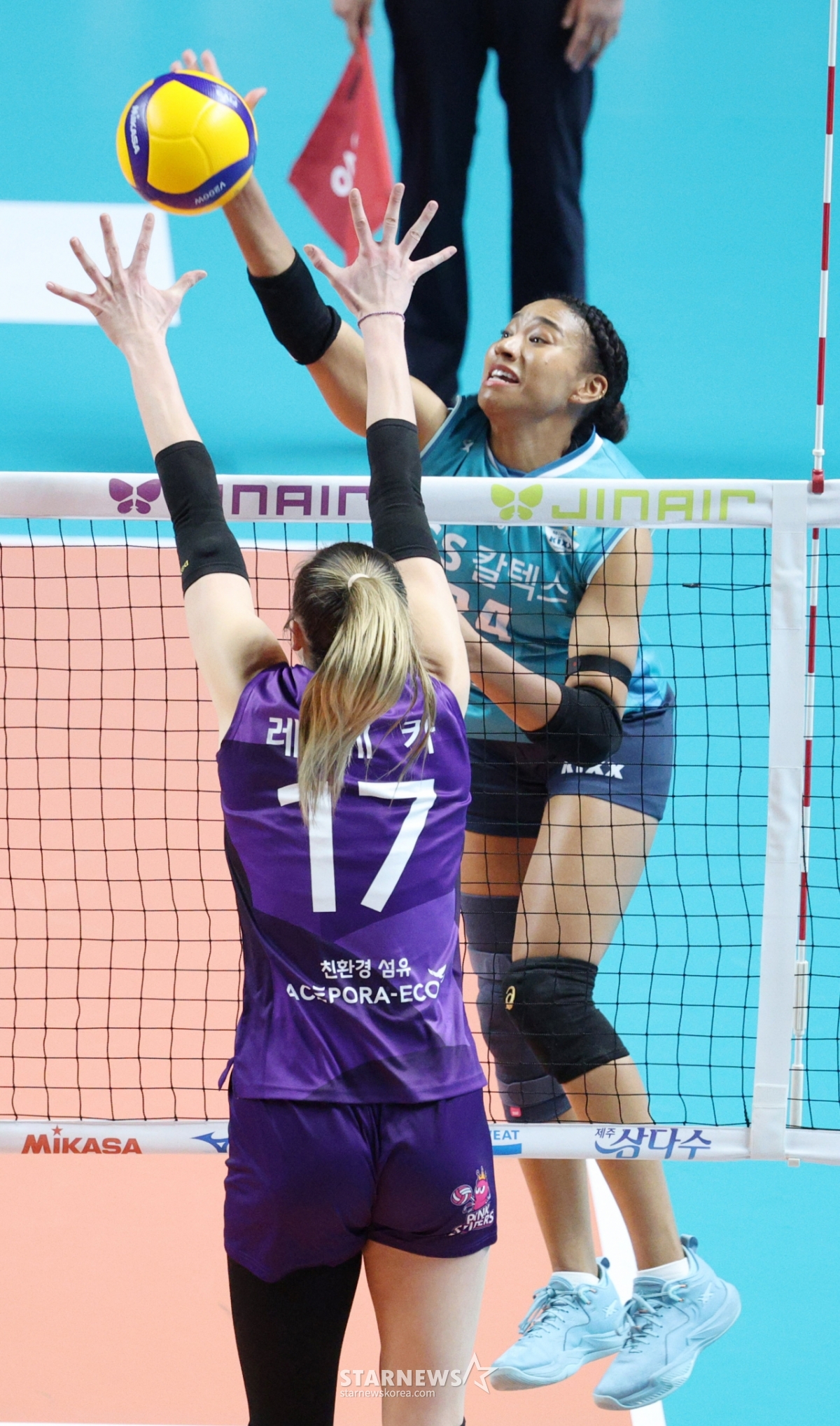 스포츠일반[포토] 레이나 vs 레베카 '레씨 대결 승자는?'발행 : 2026.01.29 ・ 19:36장충=김진경 대기자다른 언어로 기사를 읽어보세요2025-2026시즌 V리그 여자부 GS칼텍스 대 흥국생명 경기가 29일 서울 장충체육관에서 열렸다.GS칼텍스 레이나가 흥국생명 레베카 블로킹 위로 강스파이크를 날리고 있다.<저작권자 © 스타뉴스, 무단전재 및 재배포 금지>프로배구여자배구V리그흥국생명GS칼텍스이영택_감독추천 기사김진경 대기자기자홈좋아요스포츠-일반의 인기 급상승 뉴스스포츠-일반의 최신 뉴스
