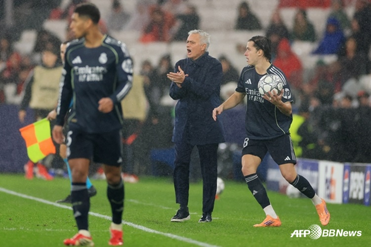 무리뉴 감독이 이끄는 벤피카는 지난 29일(한국시간) 포르투갈 리스본의 이스타디우 다 루스에서 열린 레알 마드리드와의 '2025~2026시즌 유럽축구연맹(UEFA) 챔피언스리그(UCL)' 리그 페이즈 8차전 홈 경기에서 4-2로 승리했다.