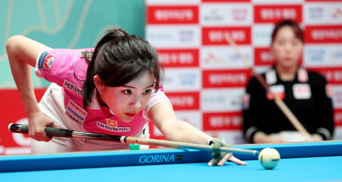 '미녀 당구 여신' 정수빈(NH농협카드)이 '미녀 당구 여제' 김가영(하나카드)을 상대로 또 승리할 수 있을까.