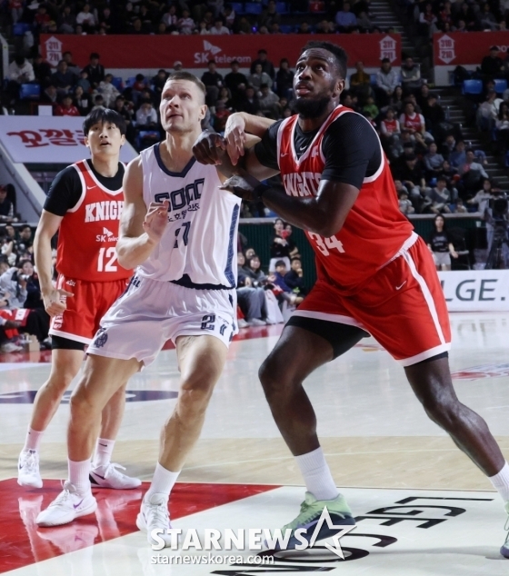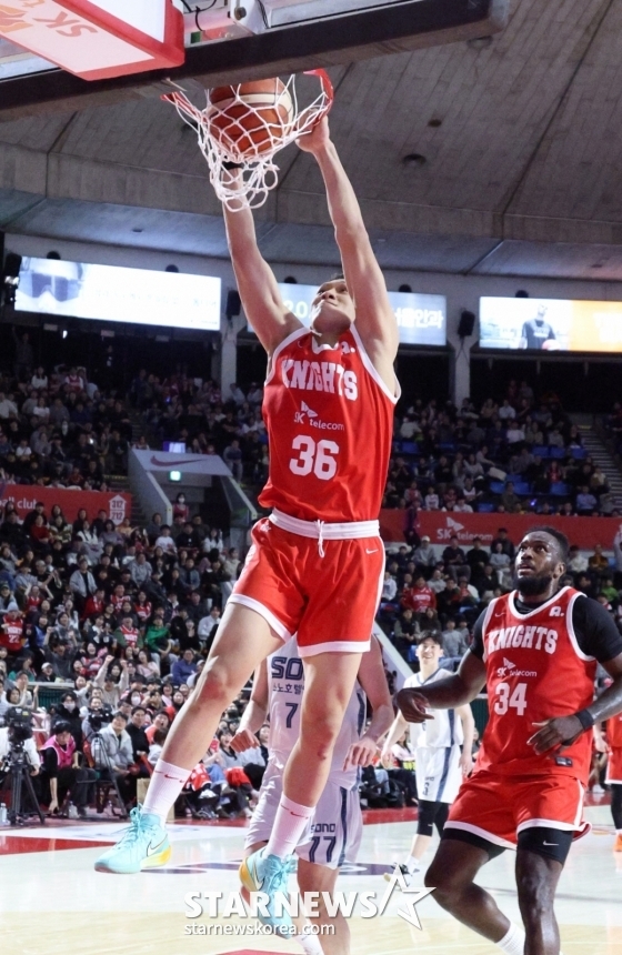 SK는 31일 서울잠실학생체육관에서 열린 2025~2026 프로농구 정규리그 홈 경기에서 고양 소노를 79-59로 대파했다.