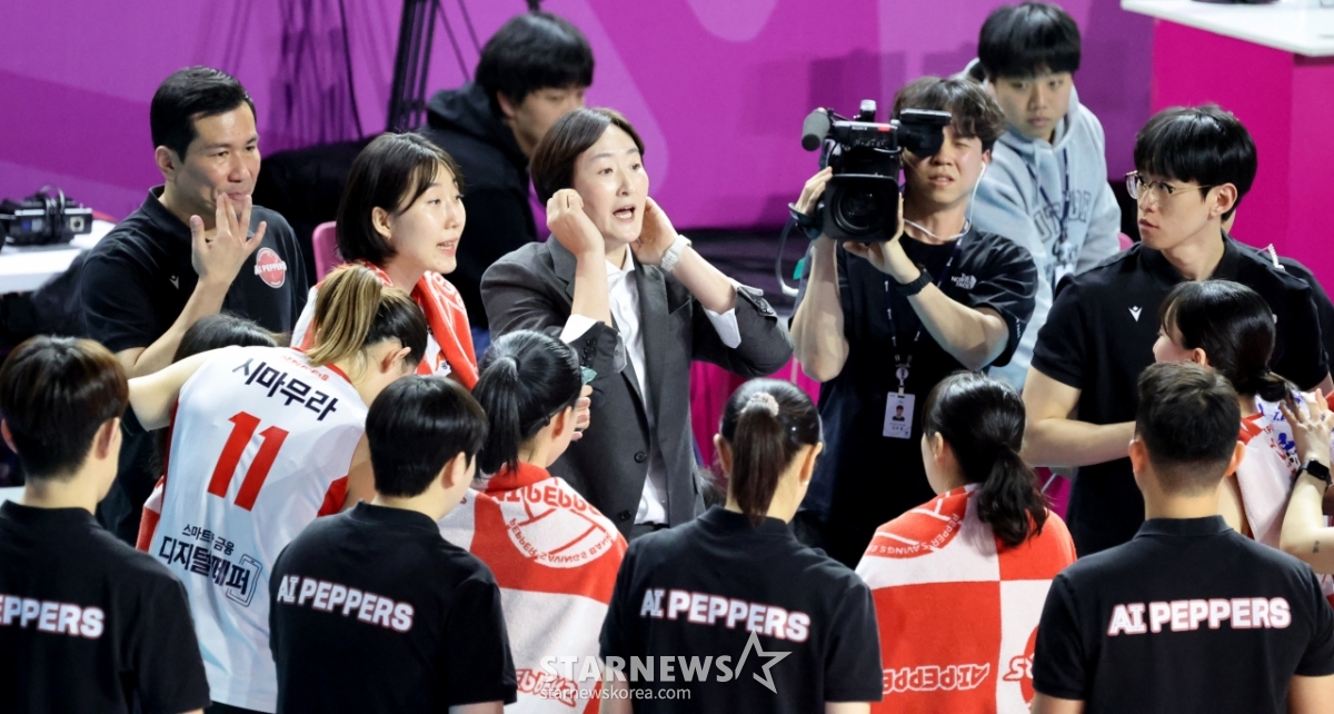 흥국 요시하라 토모코 감독이 1일 삼산월드체육관에서 열린 2025-2026 진에서 V리그 흥국생명과 페퍼저축은행경기에서 선수들을 독려하고 있다. 2026.02.01.