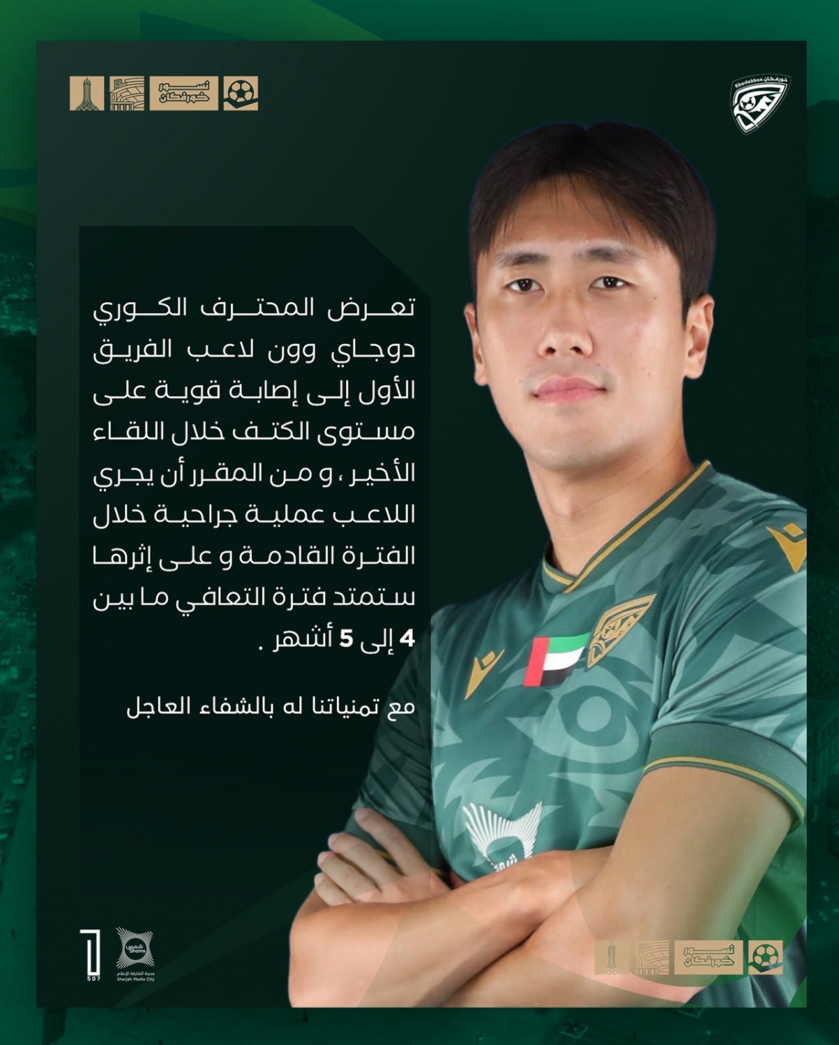 코르파칸 구단은 4일(한국시간) 공식 채널을 통해 원두재의 부상 소식을 전했다. 구단 측은 "원두재가 최근 경기 중 어깨 부상을 당해 조만간 수술받을 예정"이라며 "회복 기간은 4~5개월 정도 소요될 것으로 예상된다"고 발표했다. 원두재는 지난 1일 샤밥 알아흘리 두바이와의 프레지던트컵 8강에 선발 출전한 바 있는데, 이 경기에서 어깨를 다친 것으로 보인다. 사실상 '시즌 아웃'이다.