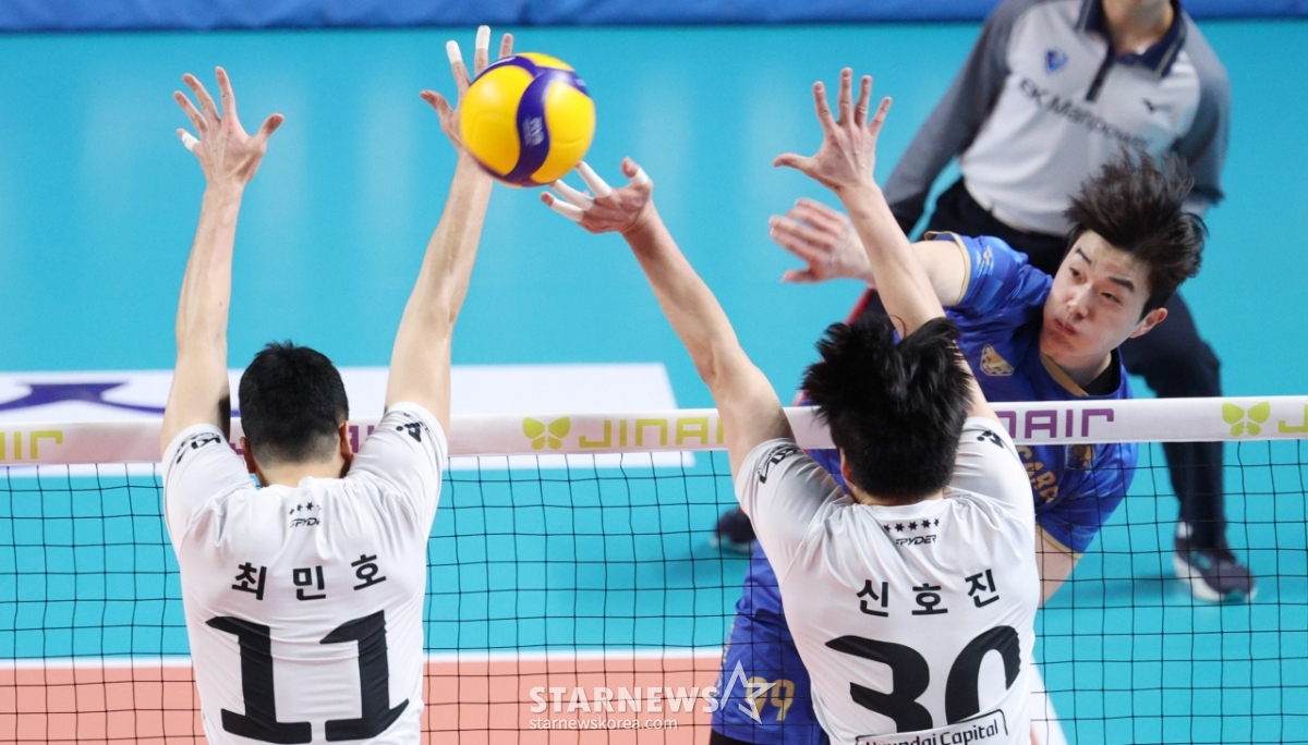 스포츠일반[포토] 김지한 '뚫었다 현캐 쌍벽'발행 : 2026.02.06 ・ 19:42조회수 :장충=김진경 대기자2025-2026 V-리그 남자부 우리카드 대 현대캐피탈 경기가 6일 서울 장충체육관에서 열렸다.우리카드 김지한이 현대캐피탈 최민호, 신호진의 블로킹 위로 강스파이크를 날리고 있다.<저작권자 © 스타뉴스, 무단전재 및 재배포 금지>브리핑추천 기사김진경 대기자기자홈좋아요스포츠-일반의 인기 급상승 뉴스스포츠-일반의 최신 뉴스AD