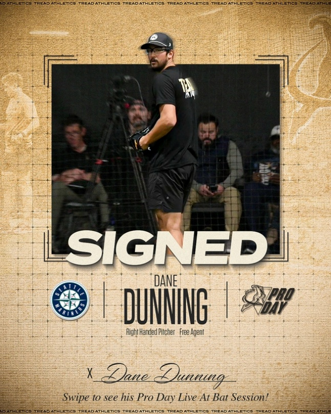 트레드 애슬레틱스는 공식 SNS를 통해 "더닝의 시애틀 입단을 축하한다. 그가 다시 시속 91마일 이상의 구속을 내야 한다는 건 비밀이 아니었다. 그의 커리어하이였던 2023시즌 싱커의 평균 구속이 91마일이었다"라며 "더닝은 불펜에서 그 이상을 해냈다. 타자 없이 2020년 이후 가장 빠른 평균 구속을 기록했고, 이는 꽤 훌륭한 성적"이라고 설명했다.