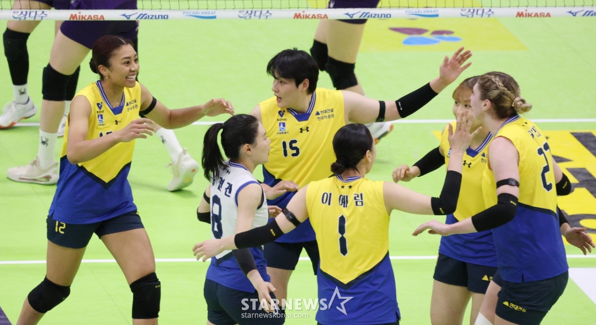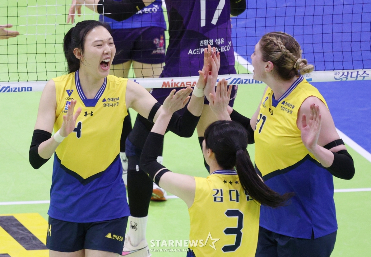 양효진이 이끄는 현대건설은 9일 수원실내체육관에서 열린 진에어 2025-26 V-리그 여자부 5라운드 흥국생명과 홈 경기에서 세트 스코어 3-1(21-25 25-14 25-20 25-20)로 역전승을 거뒀다.