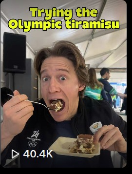 한국 피겨 아이스댄스 선수 임해나는 노스페이스 패딩 재킷과 짐가방을 모델링하는 영상을 올렸고, 남아공 스노보드 매트 스미스는 올림픽 빌리지 식당에서 라자냐와 피자를 시식하는 콘텐츠를 제작했다. 미국 스노보드 하나 노먼은 "올림픽 빌리지 뇨끼가 내 초콜릿 머핀"이라며 2024 파리 올림픽에서 바이럴을 일으켰던 노르웨이 수영선수 헨릭 크리스티안센의 머핀 리뷰를 패러디했다.