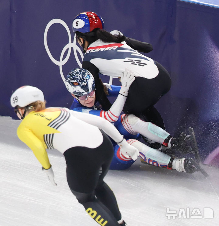하지만 레이스 중반 예상치 못한 대형 사고가 한국의 발목을 잡았다. 앞서 달리던 미국 선수가 코너를 돌던 중 갑작스럽게 중심을 잃고 넘어졌고, 뒤를 바짝 추격하던 김길리가 미처 피할 틈도 없이 미국 선수와 뒤엉켜 빙판 위로 고꾸라졌다. 미국이 자초한 사고가 한국에 치명적인 영향을 미친 셈이다.