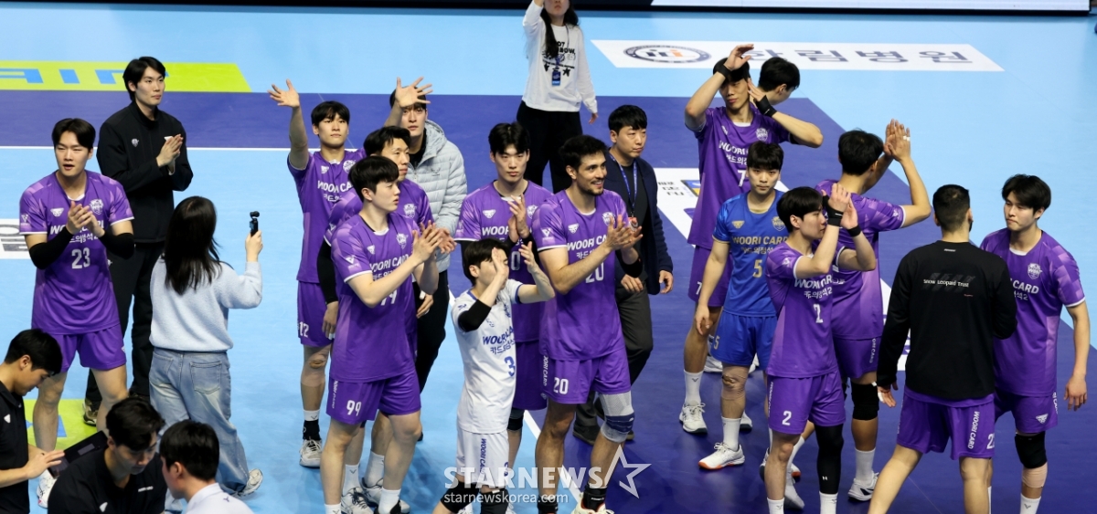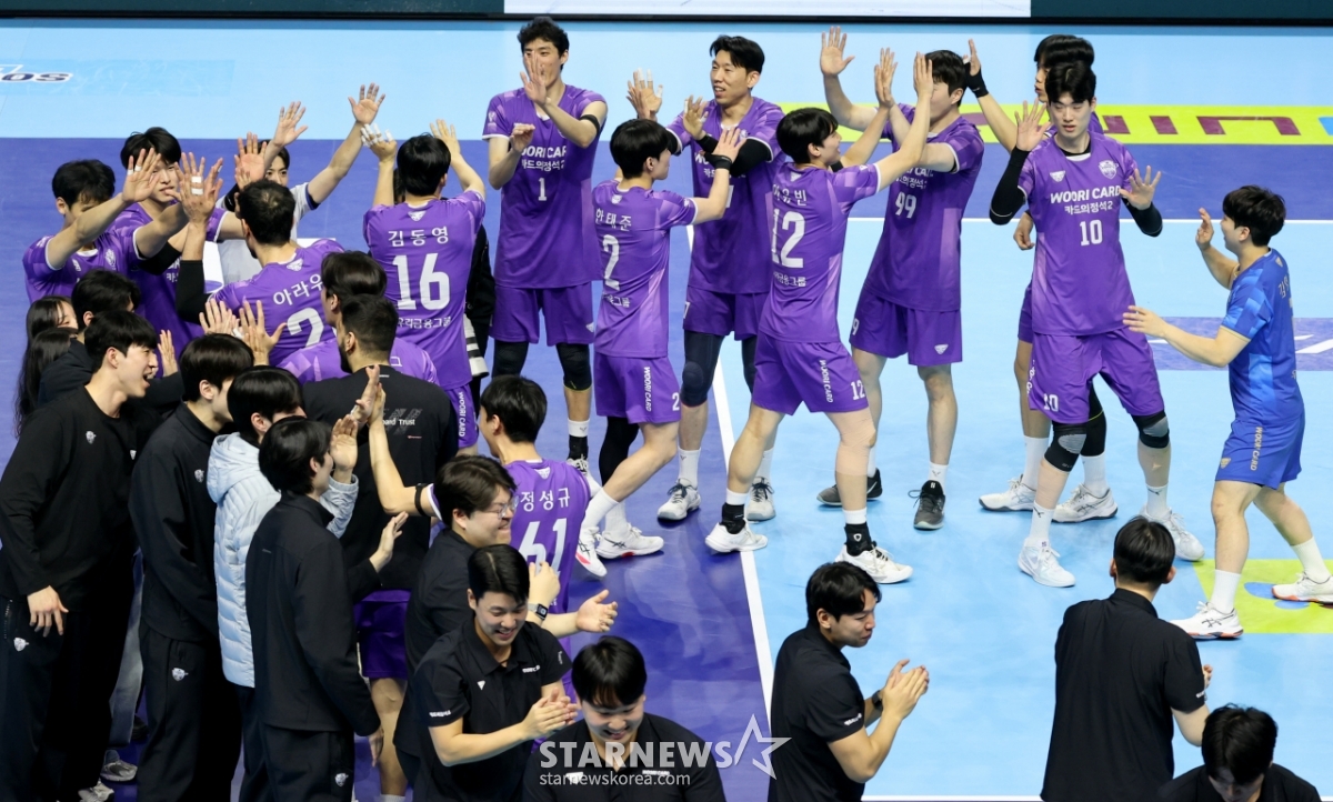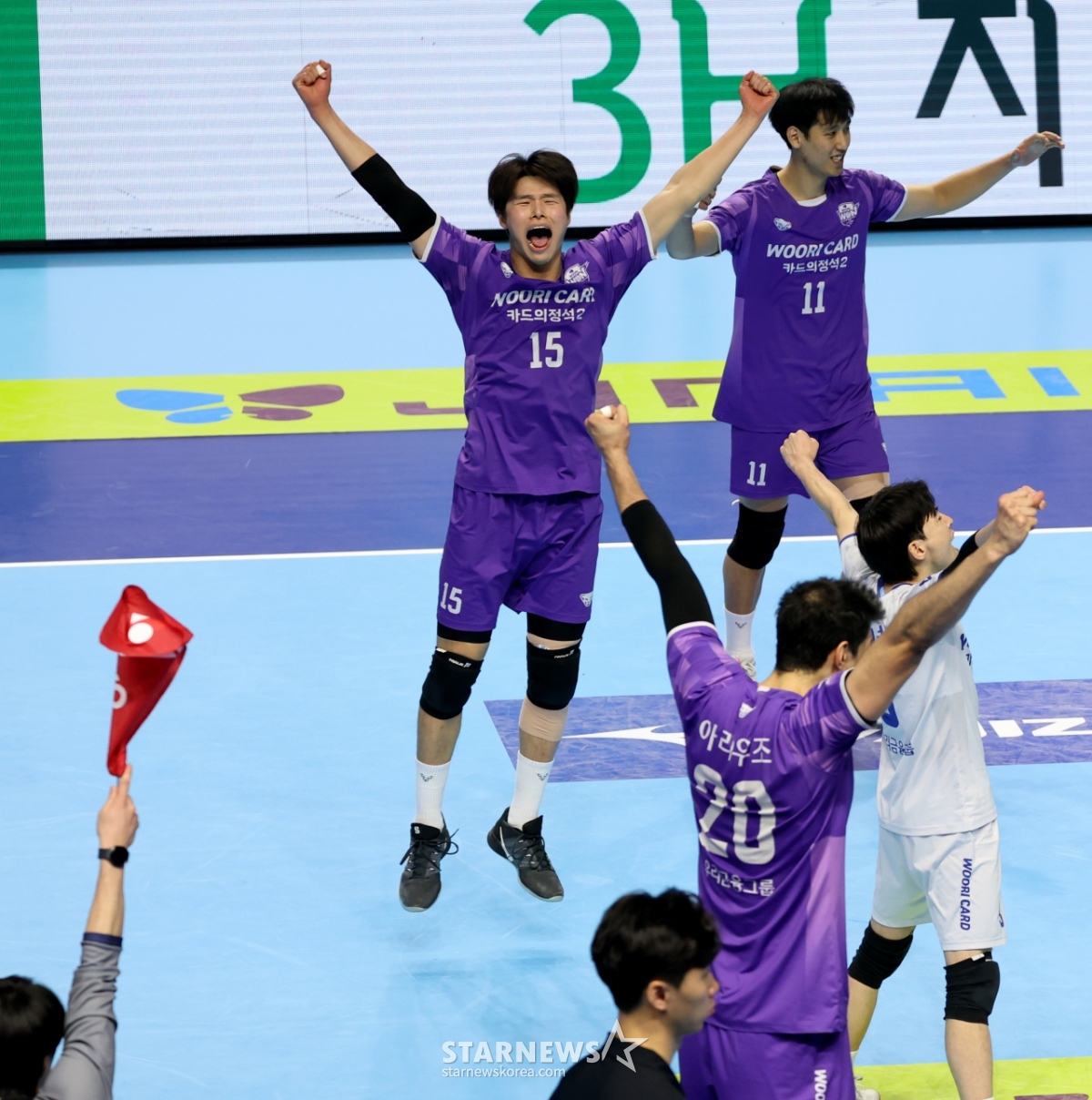 스포츠일반[한번에쓱]'대한항공 3-1로 잡아낸 감동' 환호하는 우리카드 선수들발행 : 2026.02.10 ・ 21:21조회수 :인천=강영조 선임기자우리카드 선수들이 10일 계양체육관에서 열린 진에어 2025-2026V리그 대한항공과 우리카드의 경기에서 세트스코어 3-1로 승리한 후 환호하고 있다. 2026.02.10.<저작권자 © 스타뉴스, 무단전재 및 재배포 금지>브리핑추천 기사강영조 선임기자기자홈좋아요스포츠-일반의 인기 급상승 뉴스스포츠-일반의 최신 뉴스AD