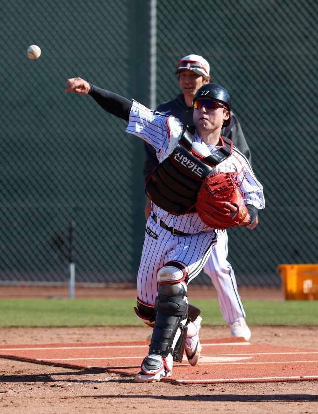 특히 하나 남은 약점을 지우기 위해 도루 저지 훈련에도 공을 들였다. 통산 30%대 도루 저지율을 기록하던 박동원은 LG 이적 후 2023년 18.6%, 2024년 25%, 2025년 21.2%로 하락세를 탔다. 박동원은 "송구를 짧게 던져서 바운드 송구가 많았다. 그래서 더 길게 던질 수 있도록 준비했다. 또 야수들이 편하게 잡을 수 있는 송구를 하는 데 신경 쓰고 있다"라며 "그동안 공을 너무 강하게 끊어 던지는 느낌이 있었다. 그래서 캐치볼 때부터 길게 던지려 하고 있다"고 설명했다.