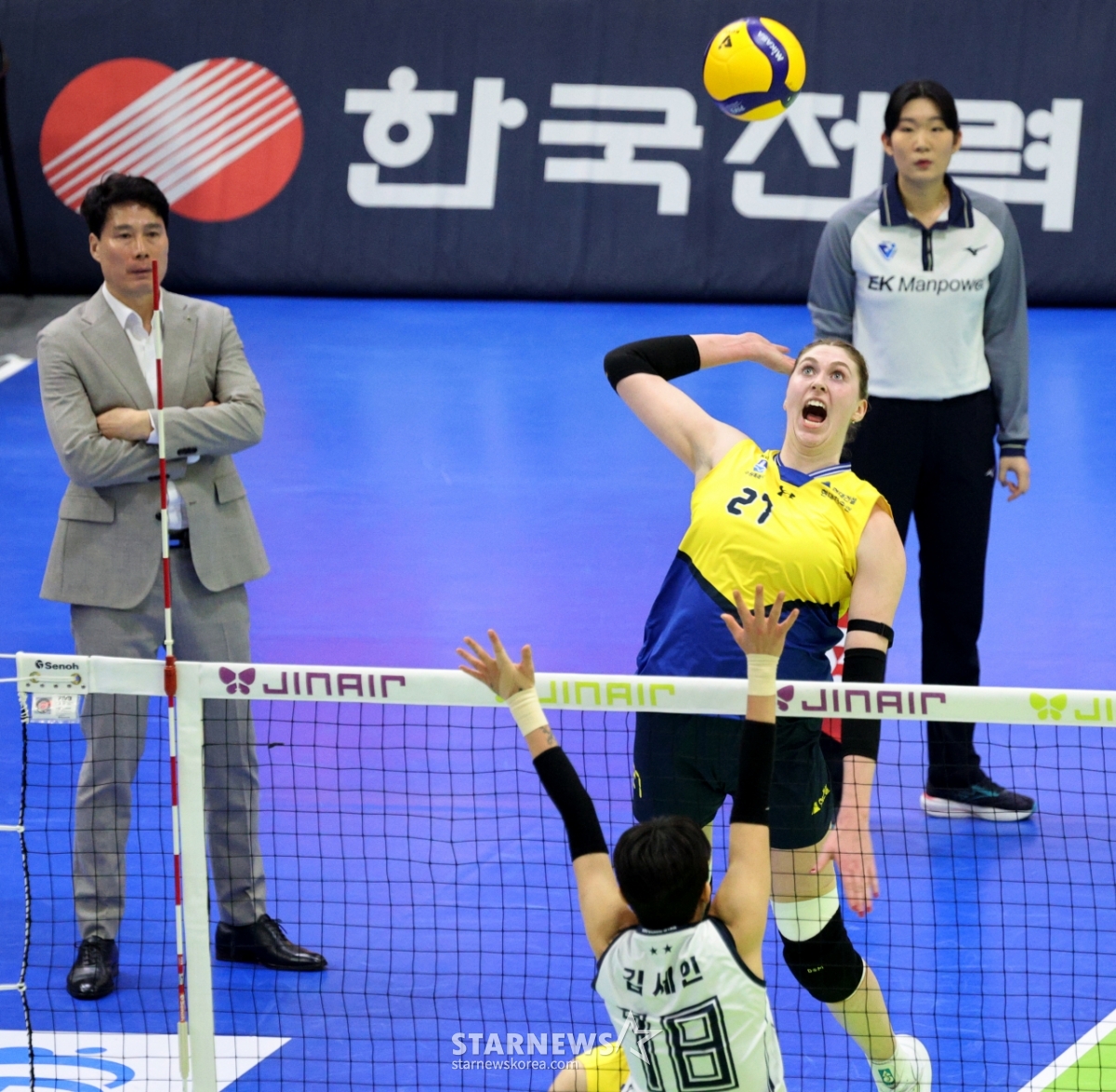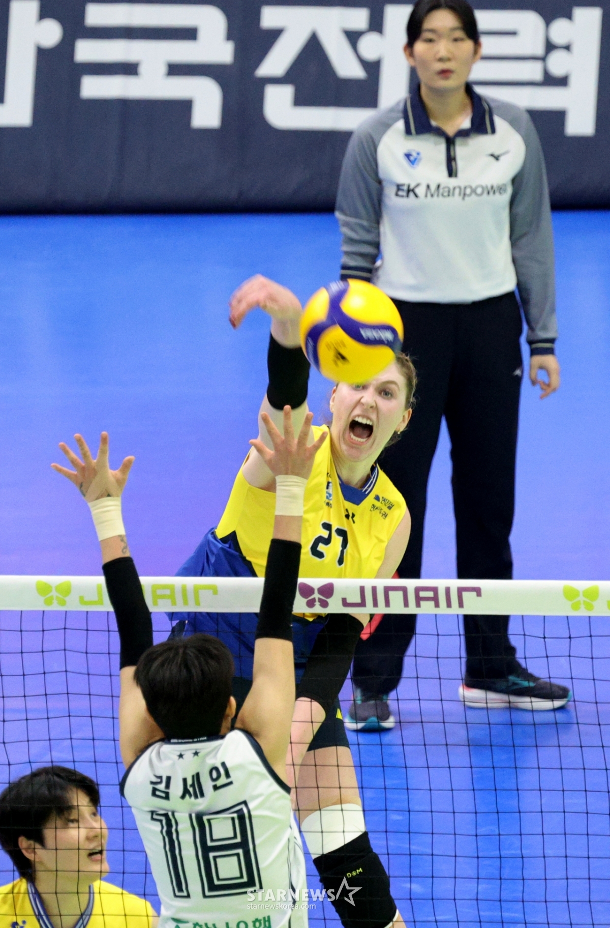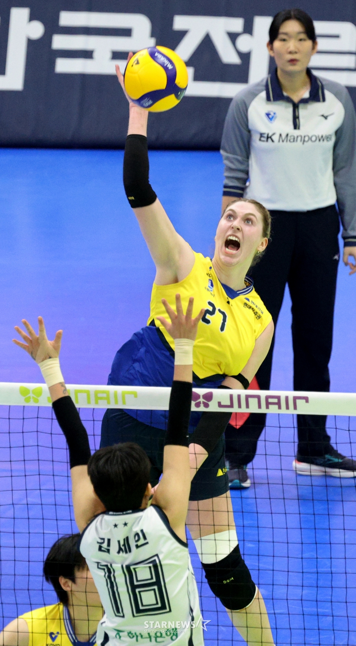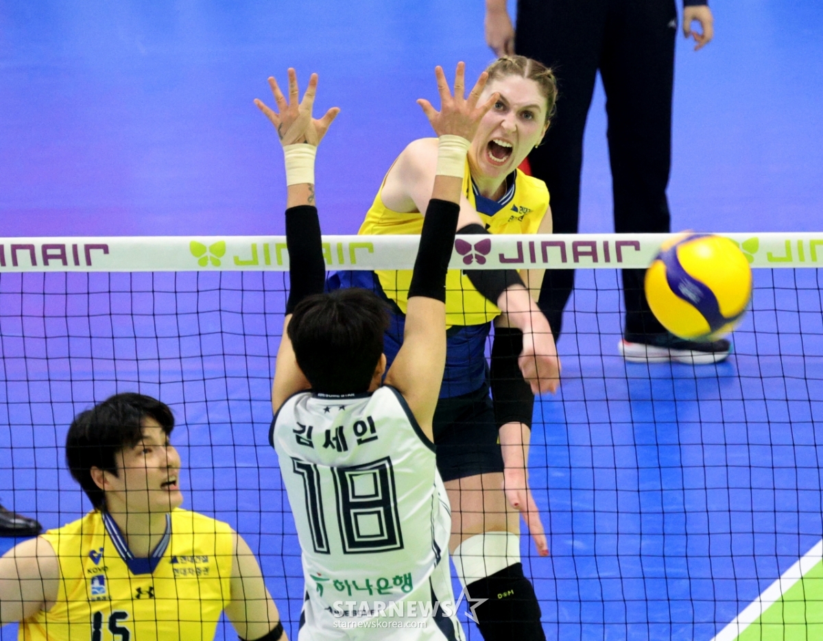 스포츠일반[포토]'악소리 난다!' 카리발행 : 2026.02.13 ・ 20:24수원=강영조 선임기자현대 카리가 13일 수원체육관에서 열린 2025-2026 진에어 V리그 현대건설과 한국도로공사 경기에서 도로공사 김세인 블로킹을 압도하며 강타를 터트리고 있다.. 2026.02.13.<저작권자 © 스타뉴스, 무단전재 및 재배포 금지>브리핑현대 카리가 13일 수원체육관에서 열린 2025-2026 진에어 V리그 현대건설과 한국도로공사 경기에서 도로공사 김세인의 블로킹을 압도하며 강타를 터트리고 있다.추천 기사강영조 선임기자기자홈좋아요스포츠-일반의 인기 급상승 뉴스스포츠-일반의 최신 뉴스