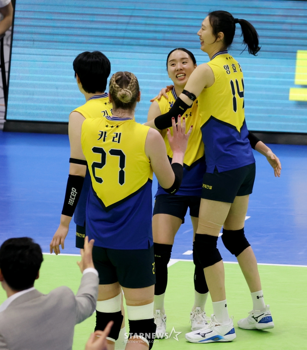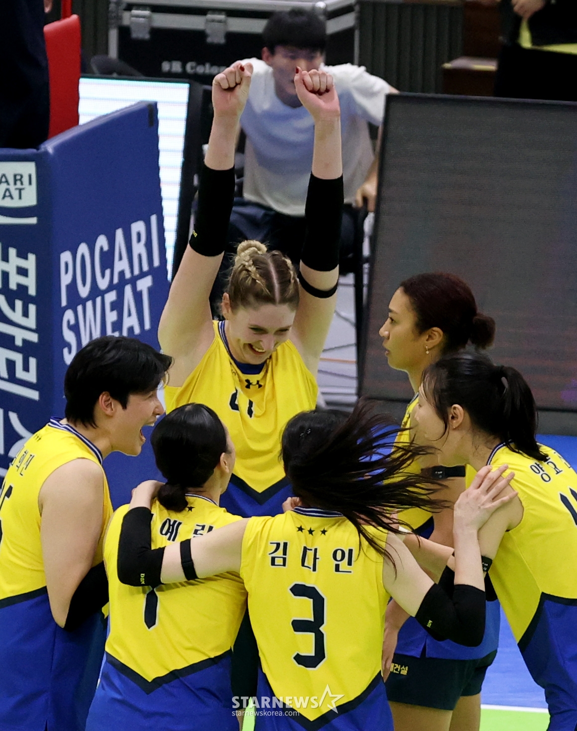 스포츠일반[한번에쓱]설선물로 도로공사 잡았다! '첫세트 내주고 내리 셋세트 챙기며' 도로공사 격파한 현대건설발행 : 2026.02.13 ・ 21:26조회수 :수원=강영조 선임기자득점환호 김희진현대건설 양효진과 선수들이 13일 수원체육관에서 열린 2025-2026 진에어 V리그 현대건설과 한국도로공사 경기 4세트에서 승길을 잡은 후 환호하고 있다.2026.02.13.<저작권자 © 스타뉴스, 무단전재 및 재배포 금지>브리핑추천 기사강영조 선임기자기자홈좋아요스포츠-일반의 인기 급상승 뉴스스포츠-일반의 최신 뉴스AD