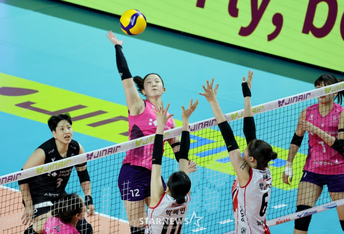 흥국생명 이다현이 14일 삼산월드체육관에서 열린 2025-2026 진에어 V리그 흥국생명과 정관장 경기에서 속공을 시도하고 있다. 2026.02.14.