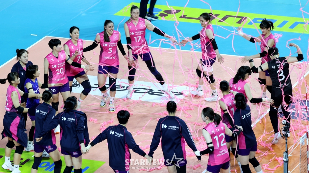 스포츠일반[한번에쓱]행복한 설날 되세요! '장관장 3-0으로 셧아웃시킨' 흥국생명발행 : 2026.02.14 ・ 18:06조회수 :수정 : 2026.02.16 ・ 17:32인천=강영조 선임기자흥국생명 선수들이 14일 삼산월드체육관에서 열린 2025-2026 진에어 V리그 흥국생명과 정관장 경기에서 3-0으로 승리한 후 자축하고 있다.정관장은 10연패에 빠졌다. 2026.02.14.<저작권자 © 스타뉴스, 무단전재 및 재배포 금지>브리핑추천 기사강영조 선임기자기자홈좋아요스포츠-일반의 인기 급상승 뉴스스포츠-일반의 최신 뉴스AD