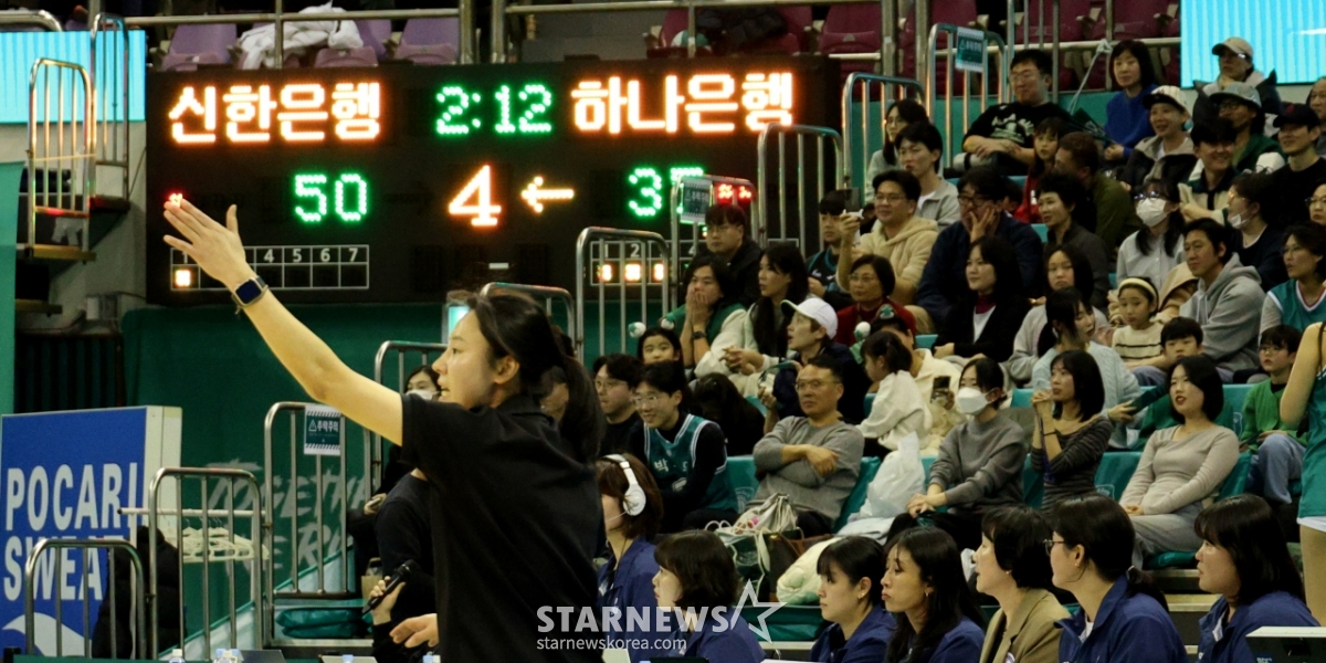 신한 최윤아 감독이 20일 부천실내체육관에서 열린 BNK금융 2025-2026 WKBL 하나은행과 신한은행 경기에서 선수들을 독려하고 있다. 2026.02.20.