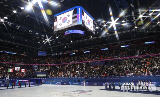 이날 태극기는 시상대에서 가장 높은 곳에 걸린 채 천천히 올라갔다. 최민정, 김길리(이상 성남시청), 노도희(화성시청), 심석희(서울시청)로 꾸려진 대표팀이 4분 04초 014의 기록과 가장 빨리 결승선을 통과, 8년 만에 금메달을 수확한 쾌거의 기쁨이 시상식으로 이어지는 순간이었다.