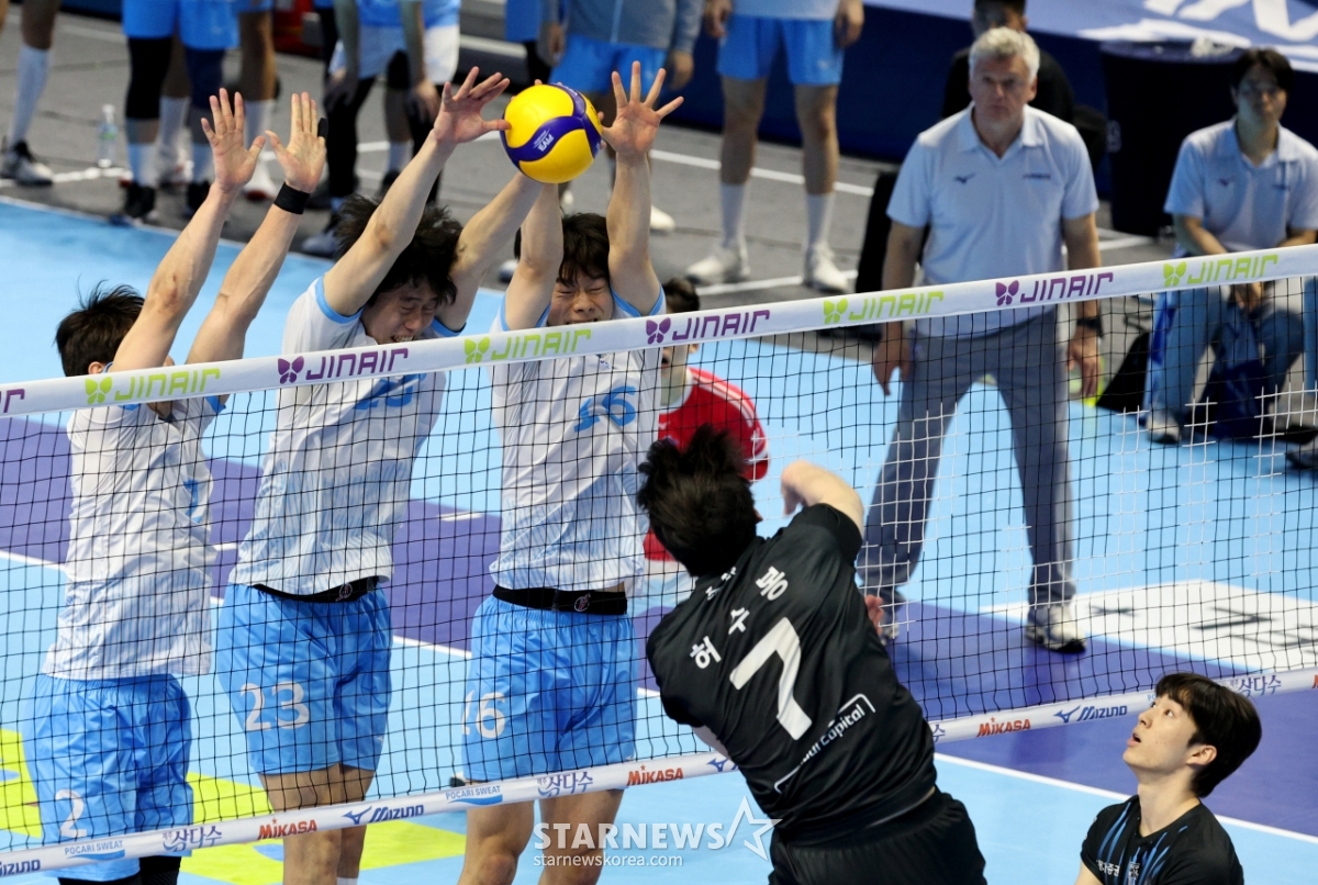 스포츠일반[포토]'표정이 예술이지!' 허수봉을 막아라발행 : 2026.02.22 ・ 15:19인천=강영조 선임기자다른 언어로 기사를 읽어보세요대한항공 한선수, 김민재, 정한용이 22일 계양체육관에서 열린 진에어 2025-2026V리그 대한항공과 현대캐피탈 경기에서 허수봉의 강타를 막기위해 안간힘을 쓰고 있다. 2026.02.202.<저작권자 © 스타뉴스, 무단전재 및 재배포 금지>브리핑대한항공 한선수, 김민재, 정한용이 22일 계양체육관에서 열린 2025-2026 V리그 대한항공과 현대캐피탈 경기에서 허수봉의 강타를 막기 위해 노력하고 있다.추천 기사강영조 선임기자기자홈좋아요스포츠-일반의 인기 급상승 뉴스스포츠-일반의 최신 뉴스