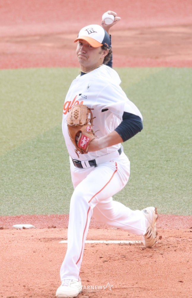 친정팀을 마주한 노시환은 시작부터 대형 홈런포로 기선을 제압했다. 공교롭게도 상대는 올 시즌 합류한 외국인 투수 오웬 화이트(27)였다. 한화 구단에 따르면 화이트는 최고 시속 155㎞, 평균 149㎞에 이르는 강력한 직구를 던지는 우완 투수다.