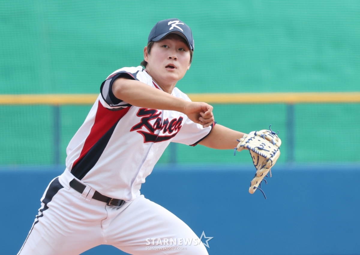 KIA 데일이 날린 강습 타구가 김택연의 글러브를 강타하자 대표팀 더그아웃은 얼음이 됐다.