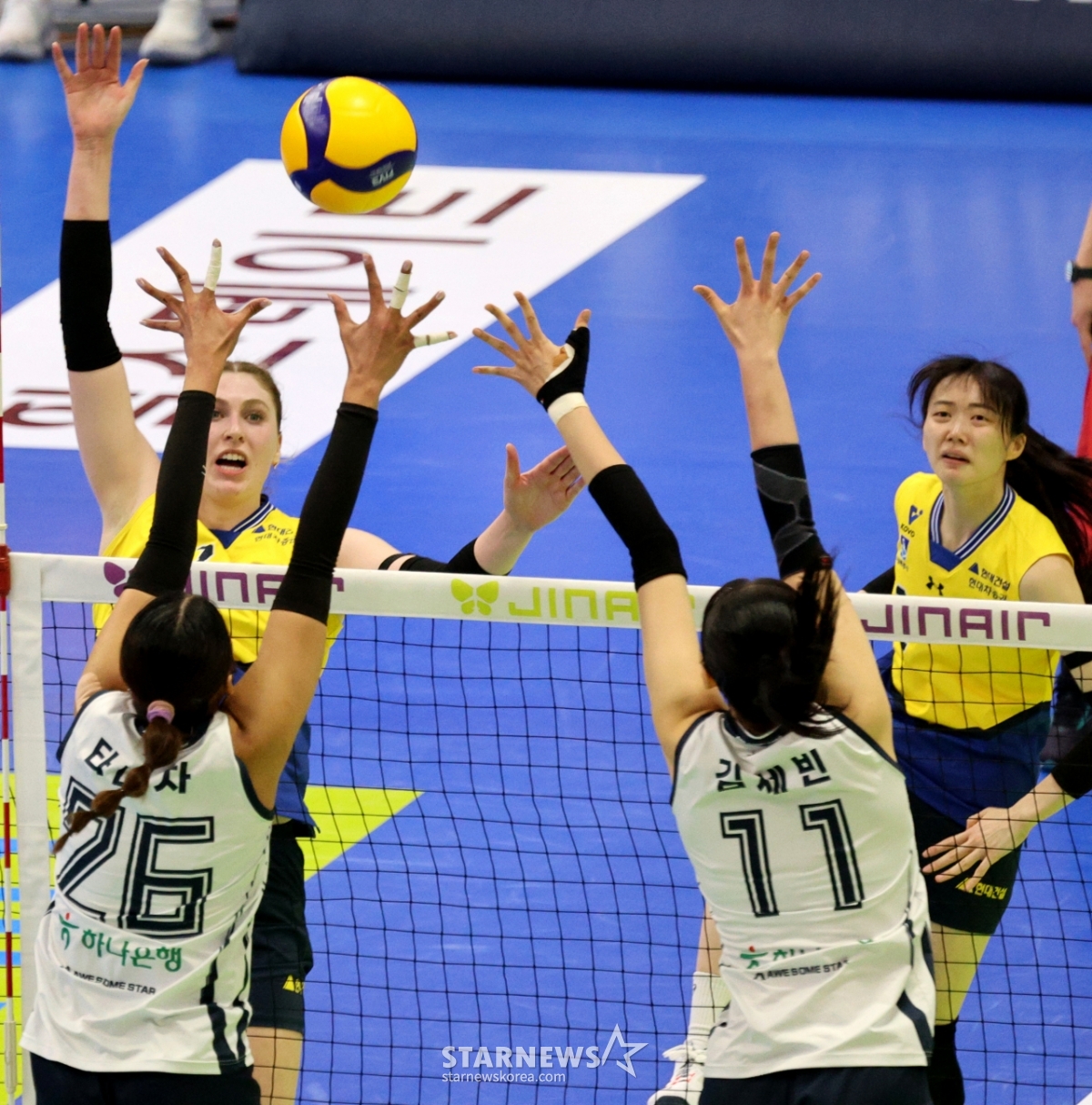 현대 카리가 24일 수원체육관에서 열린 V리그 여자부 현대건설과 한국도로공사 경기에서 연타를 시도하고 있었다.