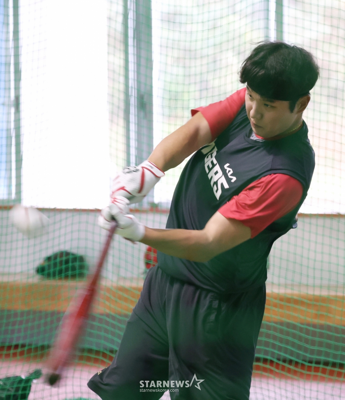 오선우가 타격 훈련을 하고 있다.
