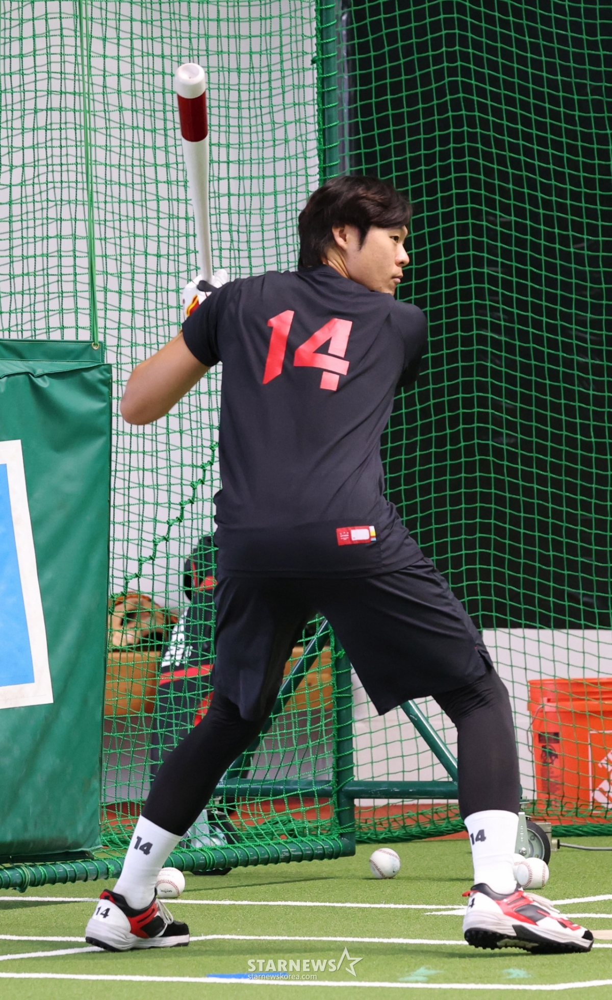 김규성이 타격 훈련을 하고 있다.