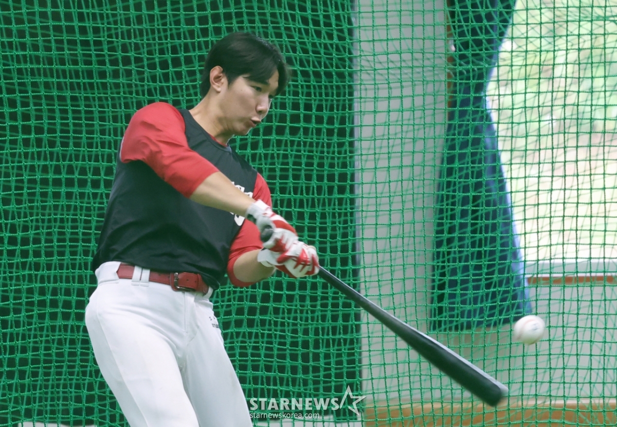 정현창이 KIA 타이거즈의 일본 오키나와 스프링캠프에서 타격 훈련을 진행했다.