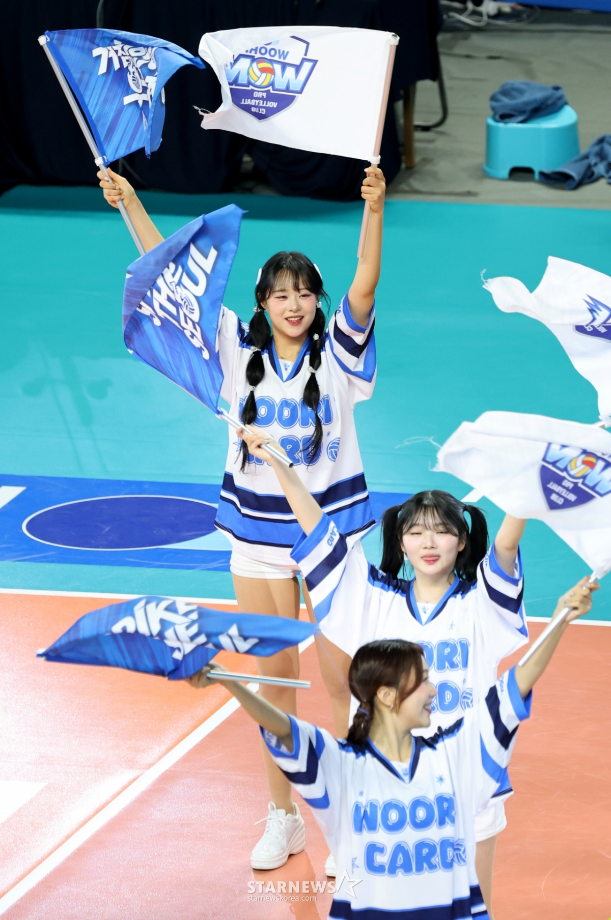 우리 치어리더 이호은이 25일 장충체육관에서 열린 진에어 2025-2026V리그 남자부 우리카드와 OK저축은행과의 경기에서 공연을 펼치고 있다.. 2026.02.25.