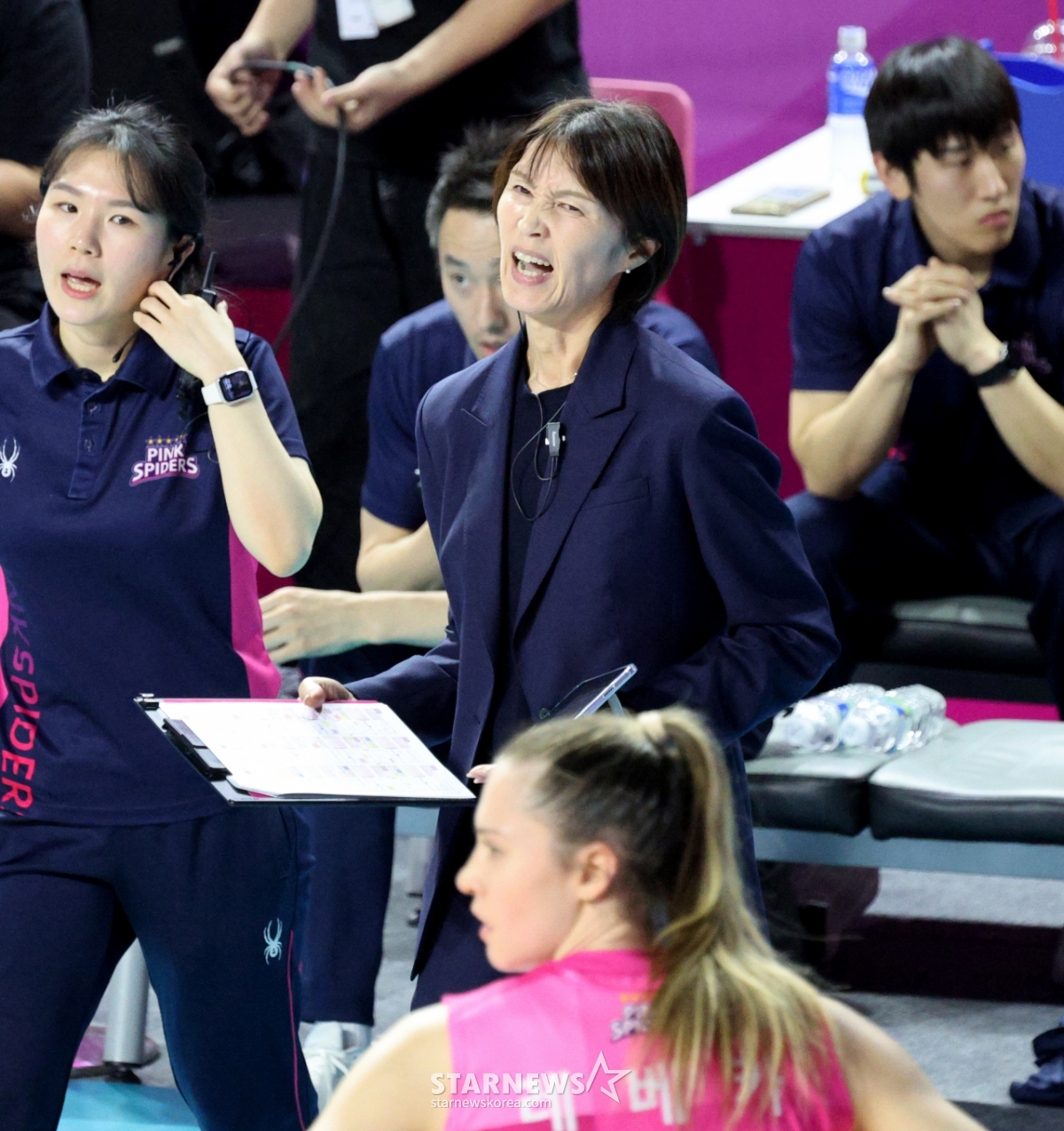 흥국 토모코 감독이 27일 삼산월드체육관에서 열린 진에어 2025-2026V리그 여자부 흥국생명과 GS칼텍스 경기에서 안타까운 표정을 짓고 있다.2026.02.27.
