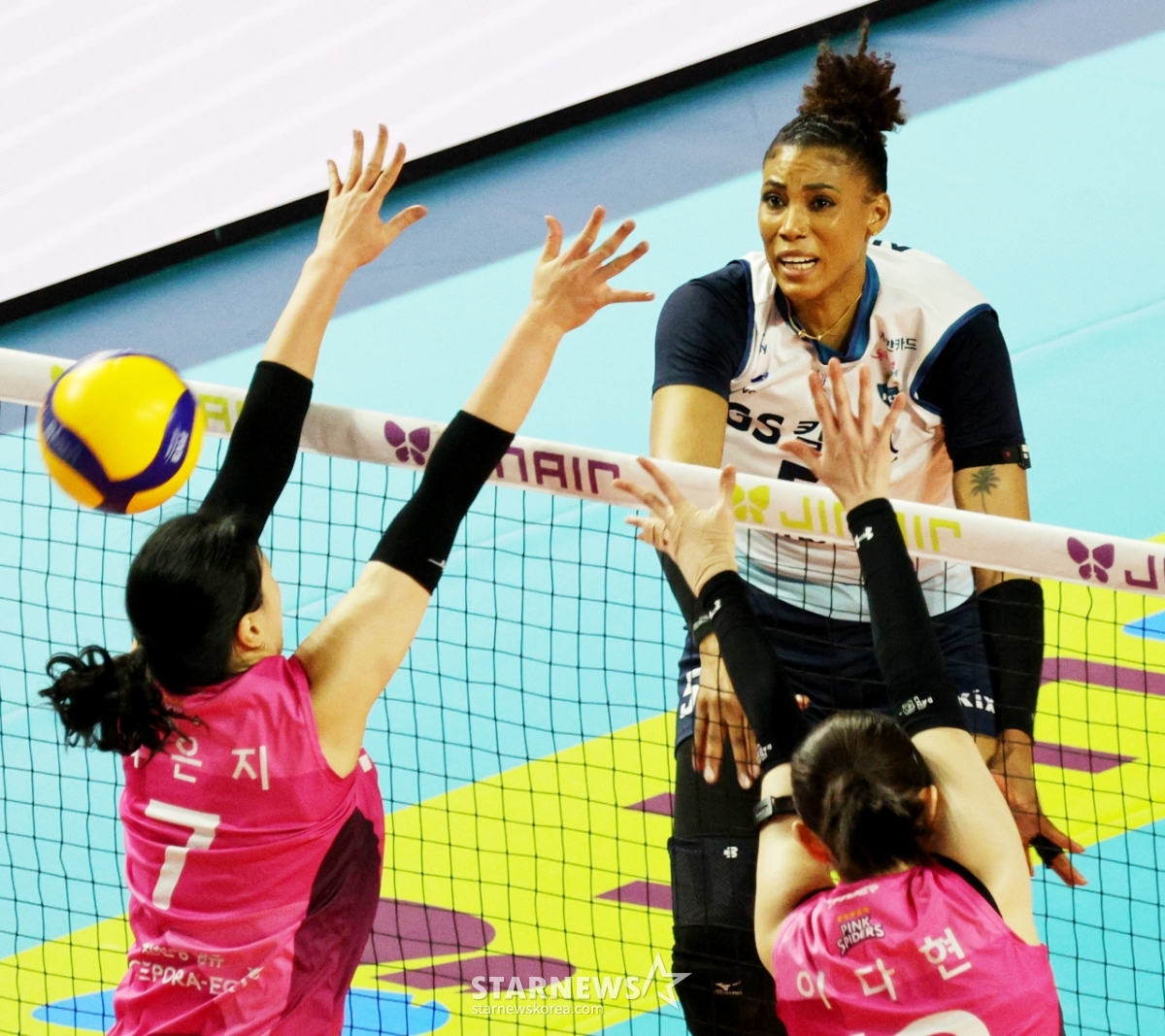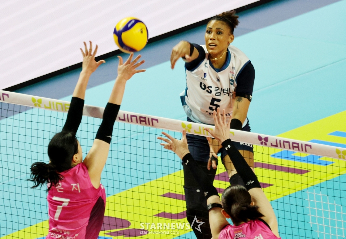 GS 실바가 27일 삼산월드체육관에서 열린 여자부 흥국생명과 GS칼텍스 경기에서 고공강타를 터트리고 있었다.