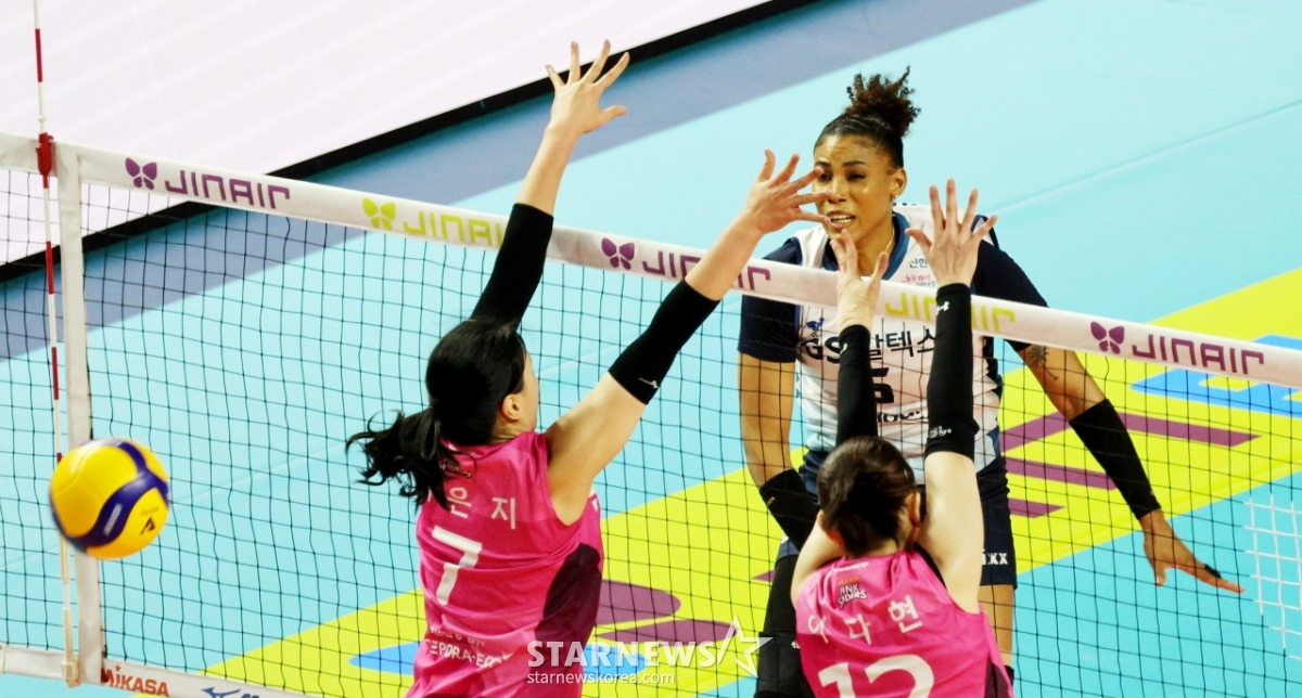 GS 실바가 27일 삼산월드체육관에서 열린 진에어 2025-2026V리그 여자부 흥국생명과 GS칼텍스 경기에서 고공강타를 터트리고 있다.2026.02.27.