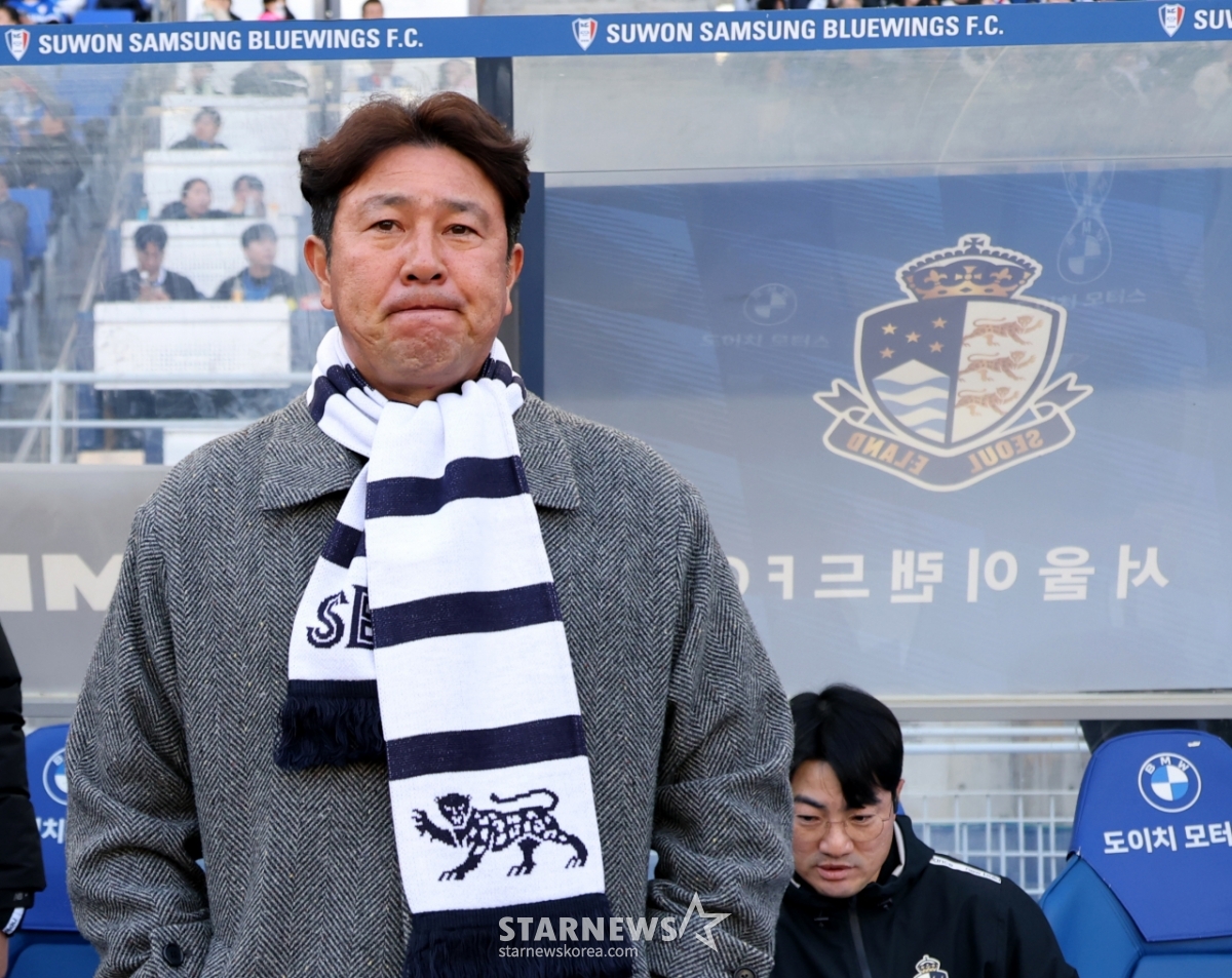 이랜드 김도균 감독이 28일 수원월드컵경기장에서 열린 2026하나은행 K리그2 수원삼성과 이랜드 경기에서 그라운드를 응시하고 있다. 2026.02.28.