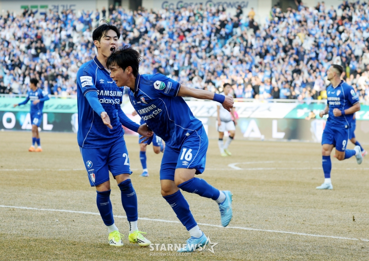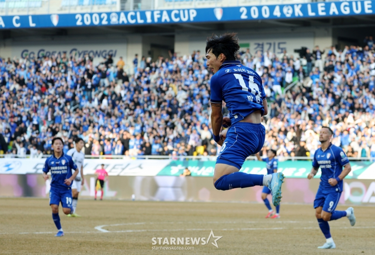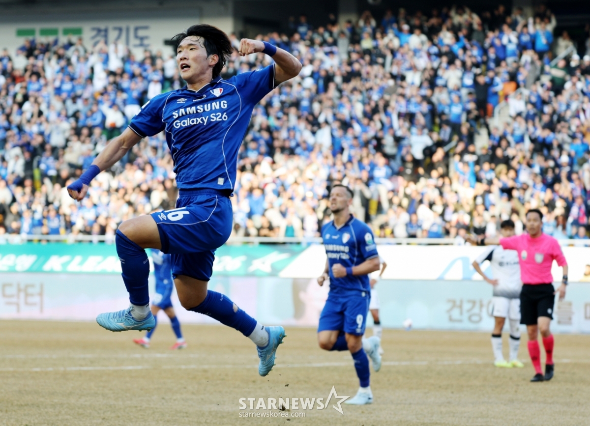 스포츠축구[한번에쓱]'수원삼성 데뷔전 이정효 감독에 패배를 안길순 없죠!' 전반 동점골 박현빈발행 : 2026.02.28 ・ 18:07조회수 :수정 : 2026.02.28 ・ 18:10수원=강영조 선임기자수원삼성 박현빈이 28일 수원월드컵경기장에서 열린 2026하나은행 K리그2 수원삼성과 이랜드 경기이자 이정효 감독 데뷔전에서 전반 막판 동점골을 터트린 후 환호하고 있다. 2026.02.28.<저작권자 © 스타뉴스, 무단전재 및 재배포 금지>브리핑추천 기사강영조 선임기자기자홈좋아요스포츠-축구의 인기 급상승 뉴스스포츠-축구의 최신 뉴스AD