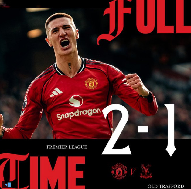 맨유는 1일(한국시간) 영국 맨체스터의 올드 트래포드에서 열린 크리스탈 팰리스와의 '2025~2026시즌 잉글리시 프리미어리그(EPL)' 28라운드 홈 경기에서 2-1로 역전승했다.