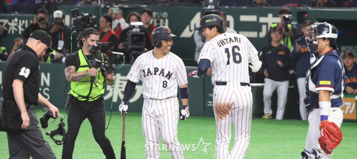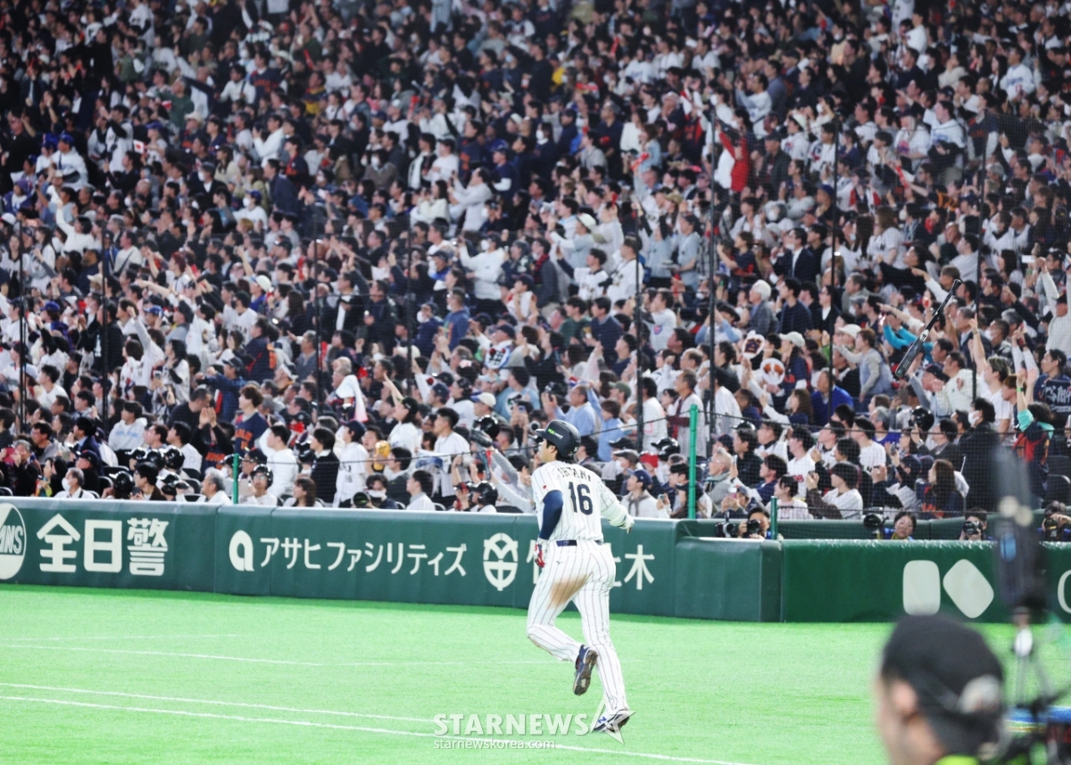 스포츠야구[한번에쓱] 오늘 홈런세리머니는 자제한다! '3회말 동점 솔로홈런' 오타니발행 : 2026.03.07 ・ 20:37수정 : 2026.03.07 ・ 20:50도쿄(일본)=강영조 선임기자일본 1번타자 오타니 쇼헤이가 7일 도쿄돔에서 열린 2026WBC 도쿄POOL 대한민국과 일본의 경기 3회말 1사 후 고영표를 상대로 동점솔로홈런을 터트린 후 홈인하고 있다. 2026.03.07.<저작권자 © 스타뉴스, 무단전재 및 재배포 금지>브리핑일본의 오타니 쇼헤이가 7일 도쿄돔에서 열린 2026WBC 도쿄POOL 대한민국과 일본의 경기 3회말 1사 후 고영표를 상대로 동점 솔로홈런을 터트렸다. 그는 홈런을 친 후 홈인했다. 오타니는 오늘 홈런 세리머니를 자제했다.추천 기사강영조 선임기자기자홈좋아요스포츠-야구의 인기 급상승 뉴스스포츠-야구의 최신 뉴스