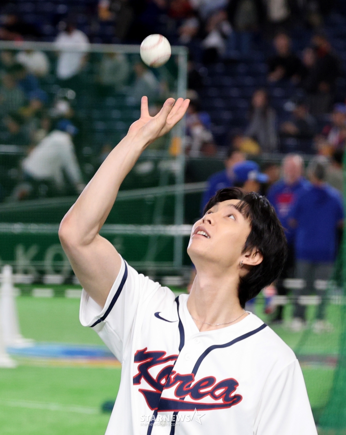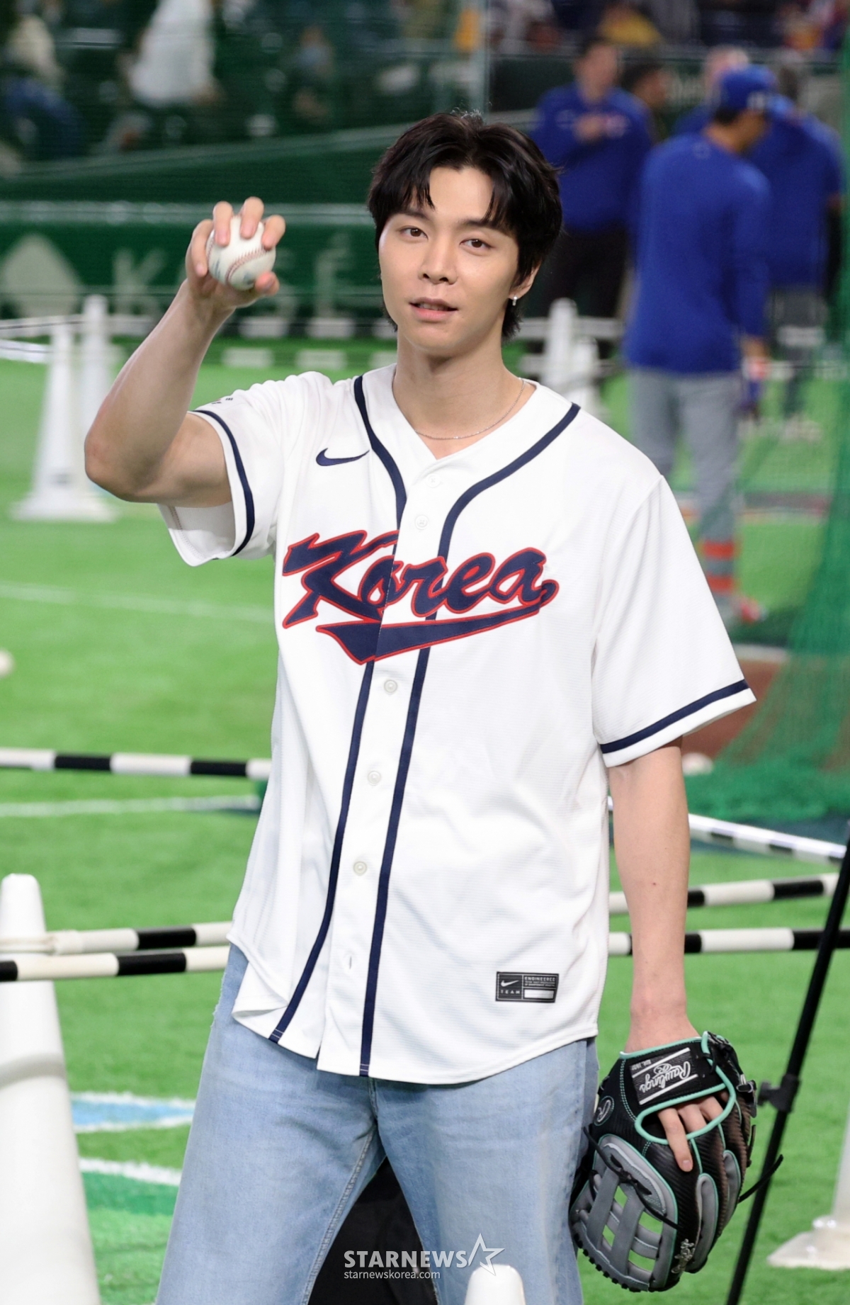 NCT 쟈니가 8일 도쿄돔에서 열린 2026 WBC 도쿄POOL 대한민국과 대만 경기 시구에 나서는 가운데 그라운드에 나와 시구 준비를 하고 있다. 026.03.08.