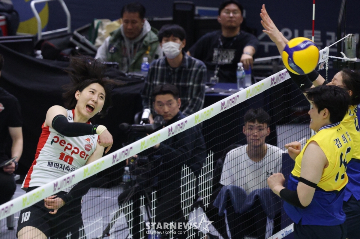 스포츠일반[포토] 박정아, 정교함으로 승부발행 : 2026.03.08 ・ 17:19수원=김진경 대기자2025-2026 V-리그 여자부 현대건설 대 페퍼저축은행 경기가 8일 경기도 수원체육관에서 열렸다.페퍼저축은행 박정아가 현대건설 카리의 블로킹 위로 강스파이크를 날리고 있다.<저작권자 © 스타뉴스, 무단전재 및 재배포 금지>브리핑2025-2026 V-리그 여자부 현대건설 대 페퍼저축은행 경기가 8일 경기도 수원체육관에서 열렸다. 페퍼저축은행 박정아는 현대건설 카리의 블로킹 위로 강스파이크를 날렸다. 이 경기는 정교함으로 승부하는 모습을 보였다.추천 기사김진경 대기자기자홈좋아요스포츠-일반의 인기 급상승 뉴스스포츠-일반의 최신 뉴스