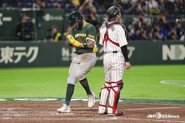 하지만 호주는 끝까지 포기하지 않았다. 9회초 마지막 공격에서 일본 마무리 투수 오타 타이세이를 두들기며 2점을 더 뽑아내 4-3까지 턱밑 추격에 성공했다. 특히 울산 웨일즈 소속인 알렉스 홀이 솔로 홈런을 뽑아냈다. 도쿄돔을 가득 메운 일본 관중들이 침묵에 빠질 정도의 '대충격' 시나리오가 써지는 듯했다. 그러나 일본은 마지막 타자를 간신히 처리하며 1점 차 승리를 지켜냈다.