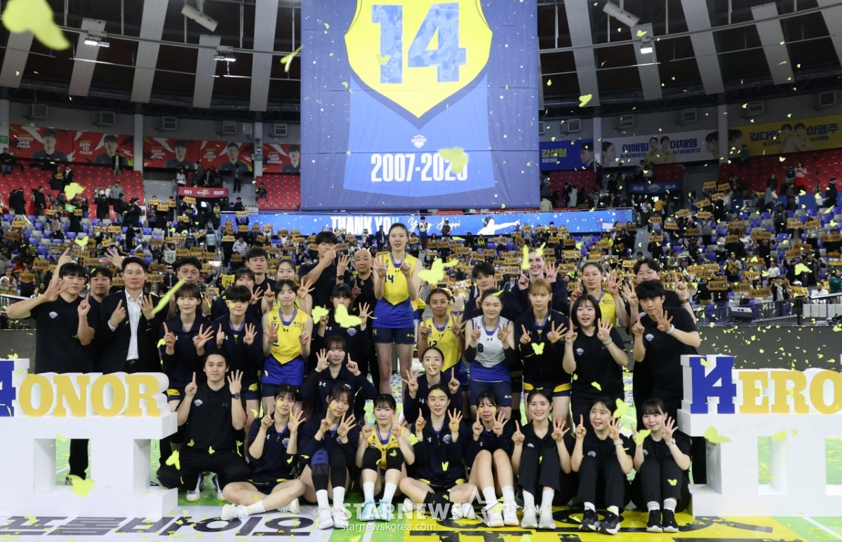 스포츠일반[포토] 강성형 감독도 '14' 고수발행 : 2026.03.08 ・ 19:33수원=김진경 대기자현대건설 원클럽우먼 양효진의 은퇴식이 8일 경기도 수원체육관에서 열렸다.2025-2026 V-리그 여자부 현대건설 대 페퍼저축은행 경기 후 열린 은퇴식에서 양효진이 선수단과 기념촬영을 하고 있다.<저작권자 © 스타뉴스, 무단전재 및 재배포 금지>브리핑현대건설 원클럽우먼 양효진의 은퇴식이 8일 경기도 수원체육관에서 열렸다. 2025-2026 V-리그 여자부 현대건설 대 페퍼저축은행 경기 후 은퇴식이 진행됐다. 양효진은 선수단과 기념촬영을 했다.추천 기사김진경 대기자기자홈좋아요스포츠-일반의 인기 급상승 뉴스스포츠-일반의 최신 뉴스