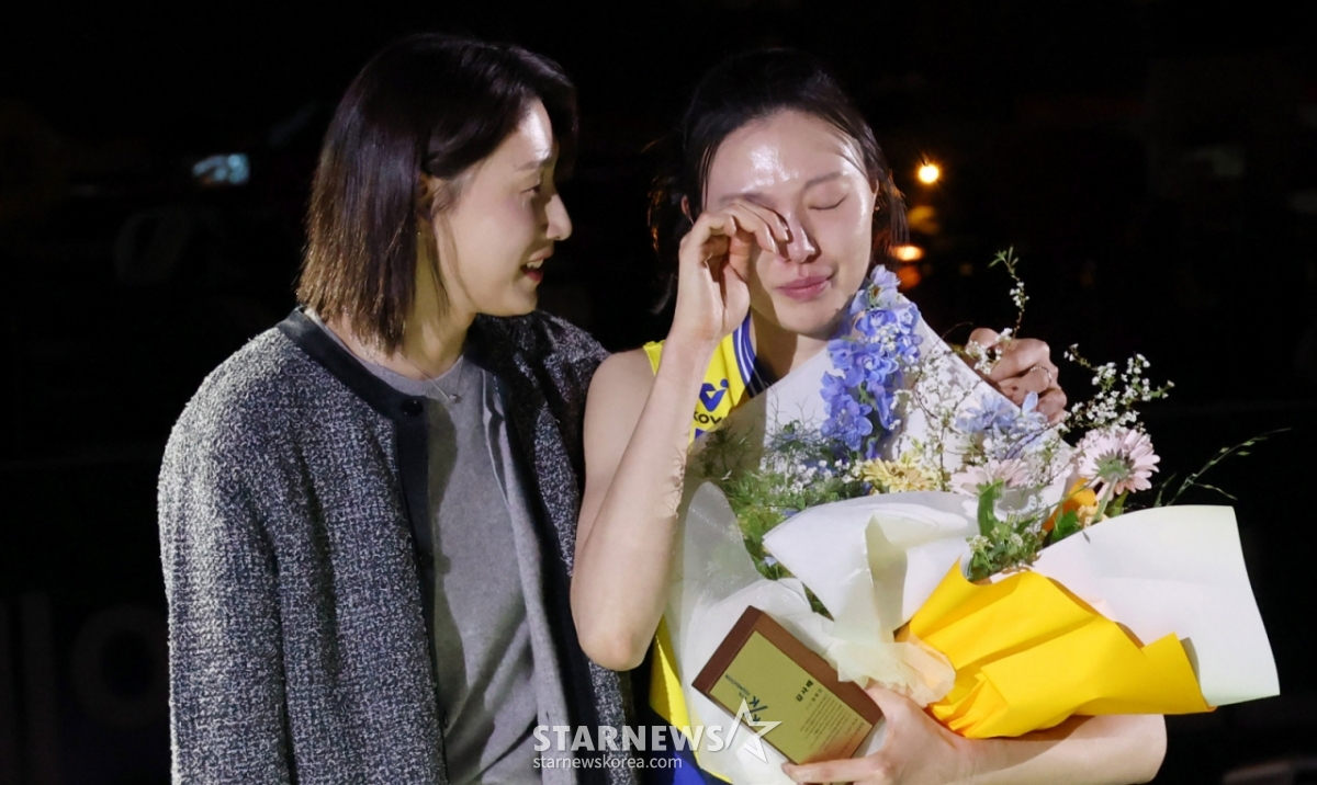 양효진은 "가족들이랑 사진 찍고 (김)연경 언니와 감독님, (김)다인이 등 가까운 분들을 보는데 갑자기 그분들과 함께했던 희로애락이 느껴졌다. 오늘 진짜 안 울려고 했는데 그동안 힘들고 즐거웠던 것들이 머릿속을 스쳐 가면서 마음이 그랬다"고 멋쩍은 웃음을 지었다.