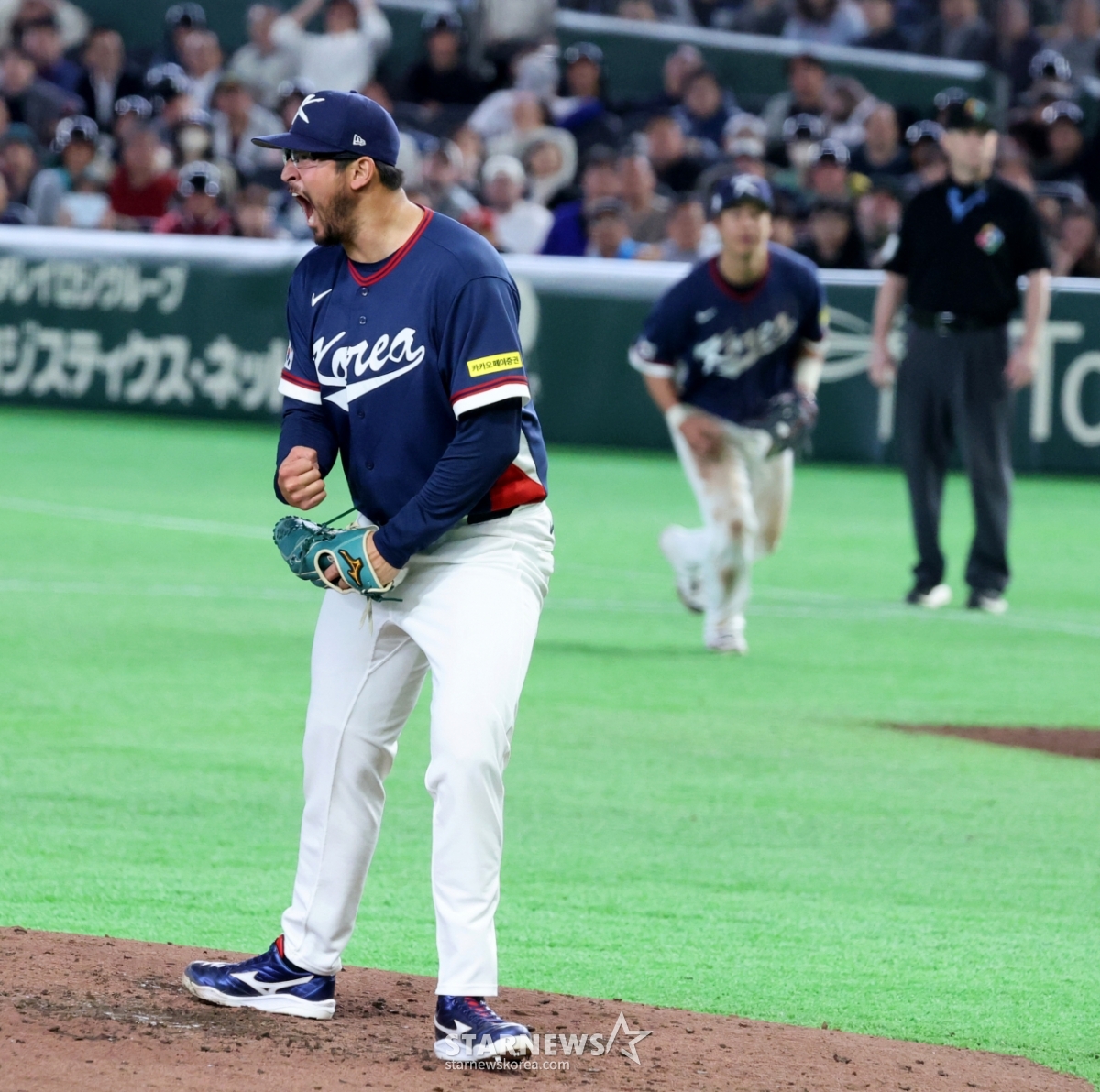 스포츠야구[한번에쓱]'포효 안할수가 없지!' 7회말 무사 1,2루 무실점으로 이겨낸 더닝발행 : 2026.03.09 ・ 21:36도쿄(일본)=강영조 선임기자야구대표팀 데인 더닝이 9일 도쿄돔에서 열린 2026 WBC 도쿄POOL 대한민국과 호주 경기 7회말 무사 1,2루 위기를 무실점으로 막아낸 후 포효하고 있다.. 026.03.08.<저작권자 © 스타뉴스, 무단전재 및 재배포 금지>브리핑야구대표팀 데인 더닝이 9일 도쿄돔에서 열린 2026 WBC 도쿄POOL 대한민국과 호주 경기에서 7회말 무사 1,2루 위기를 맞았다. 그는 이 위기를 무실점으로 막아냈다. 위기를 이겨낸 후 데인 더닝은 포효했다.추천 기사강영조 선임기자기자홈좋아요스포츠-야구의 인기 급상승 뉴스스포츠-야구의 최신 뉴스
